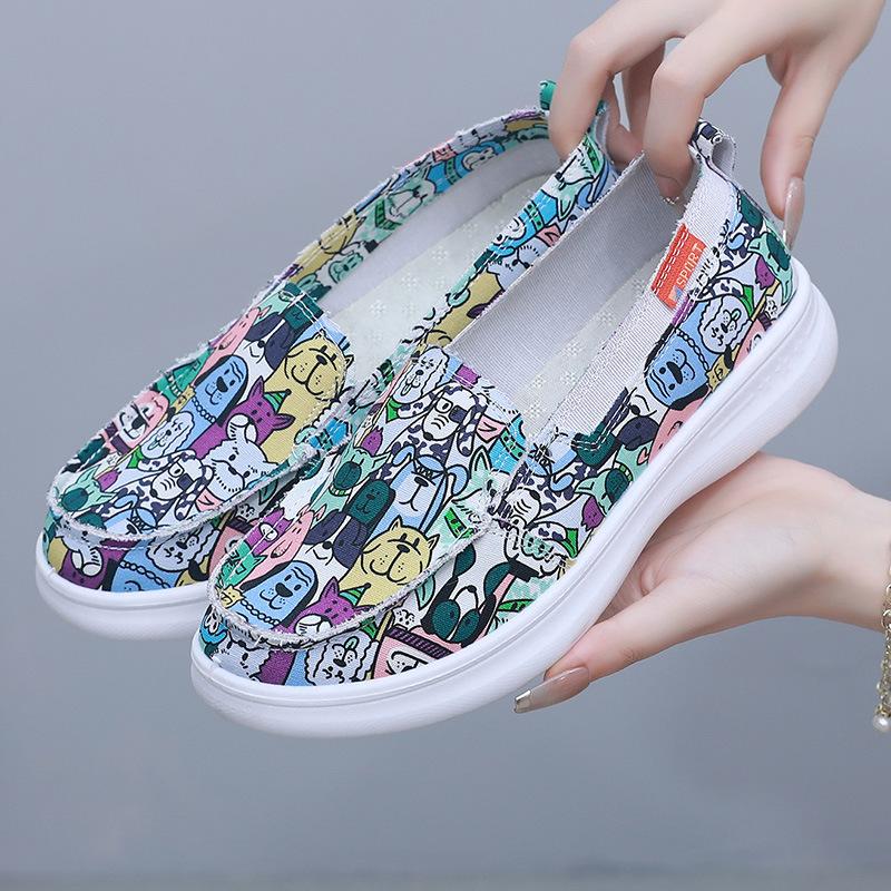 Модные универсальные парусиновые туфли 2025 новинка старые пекинские тканевые туфли нескользящие дышащие женские туфли на мягкой подошве удобные ленивые туфли
