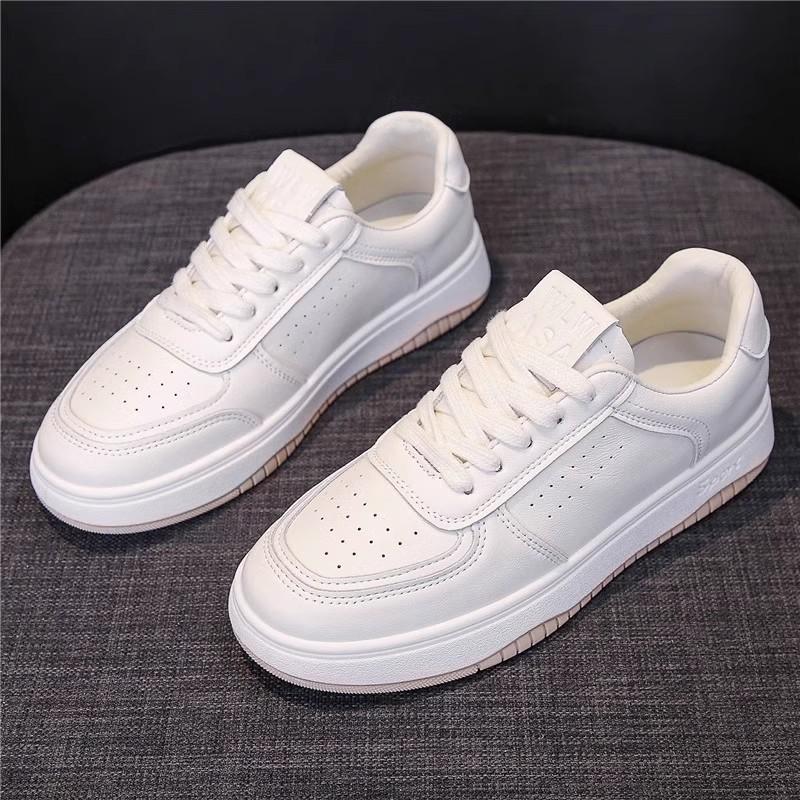 Кожаные белые туфли на плоской подошве, женская обувь, весна-лето 2025, новые универсальные дышащие повседневные спортивные студенческие туфли на мягкой подошве