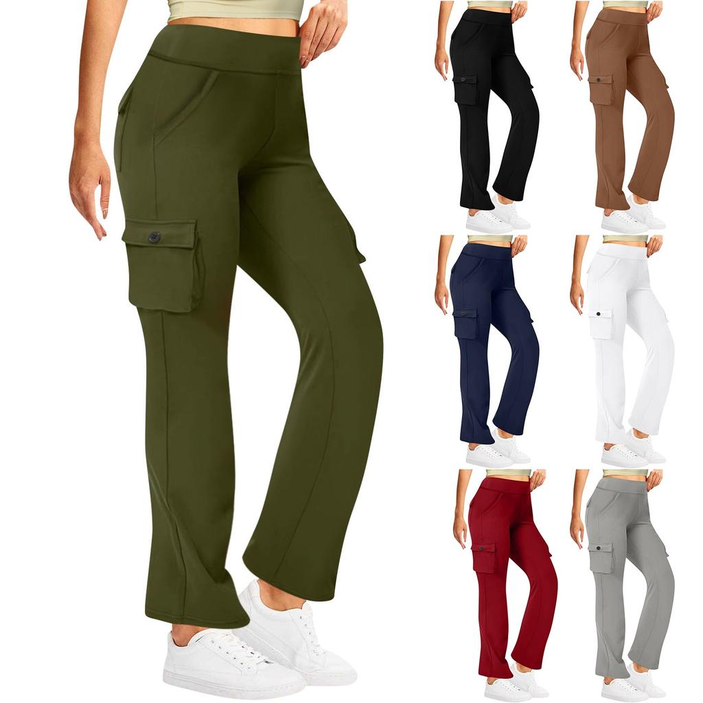 Женские модные космические боковые карманы, эластичная талия, пуговицы, однотонные брюки с несколькими карманами — купить товар онлайн с бесплатной доставкой до всему миру!