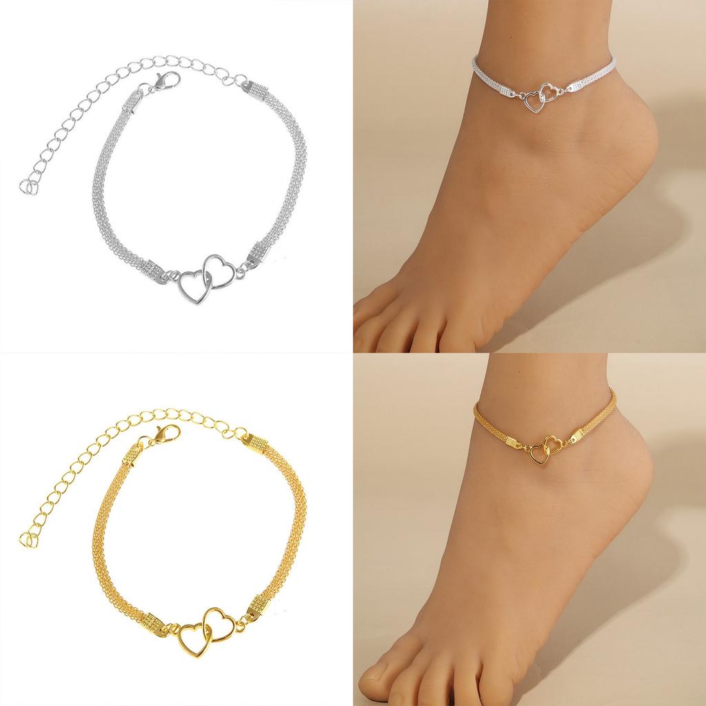 Украшения для ног в форме блестящих сердец со стразами, регулируемый браслет на щиколотку, браслет на щиколотку с кристаллами в форме двойного сердца