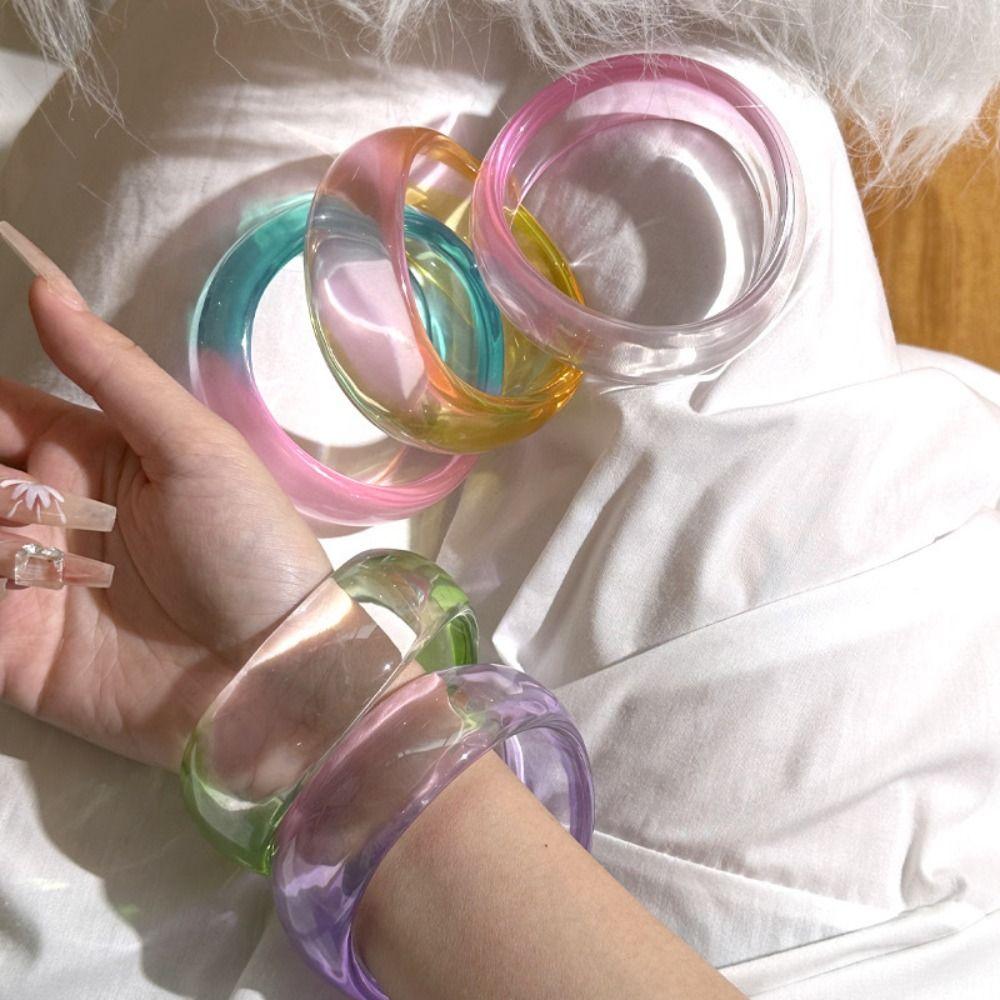 Широкий браслет цвета градиента желе прозрачный геометрический нерегулярный браслет для девочек
