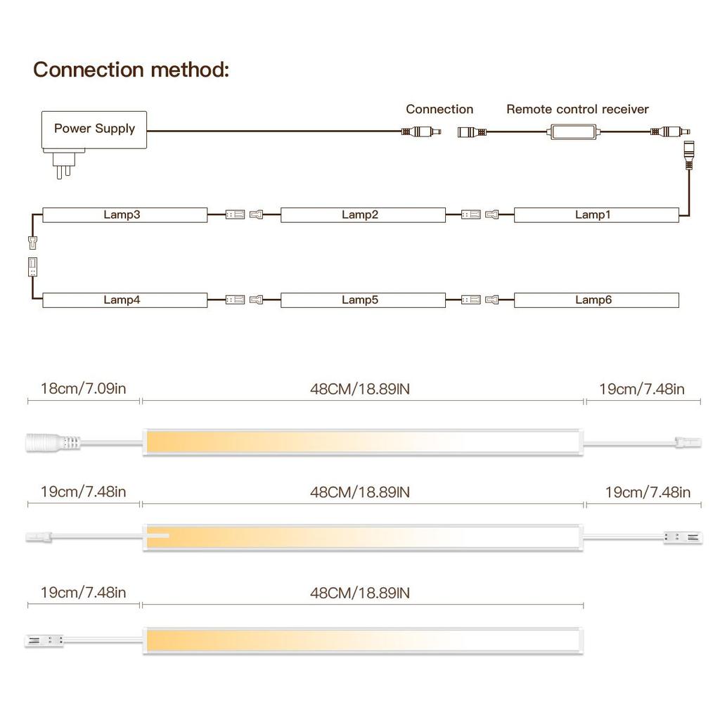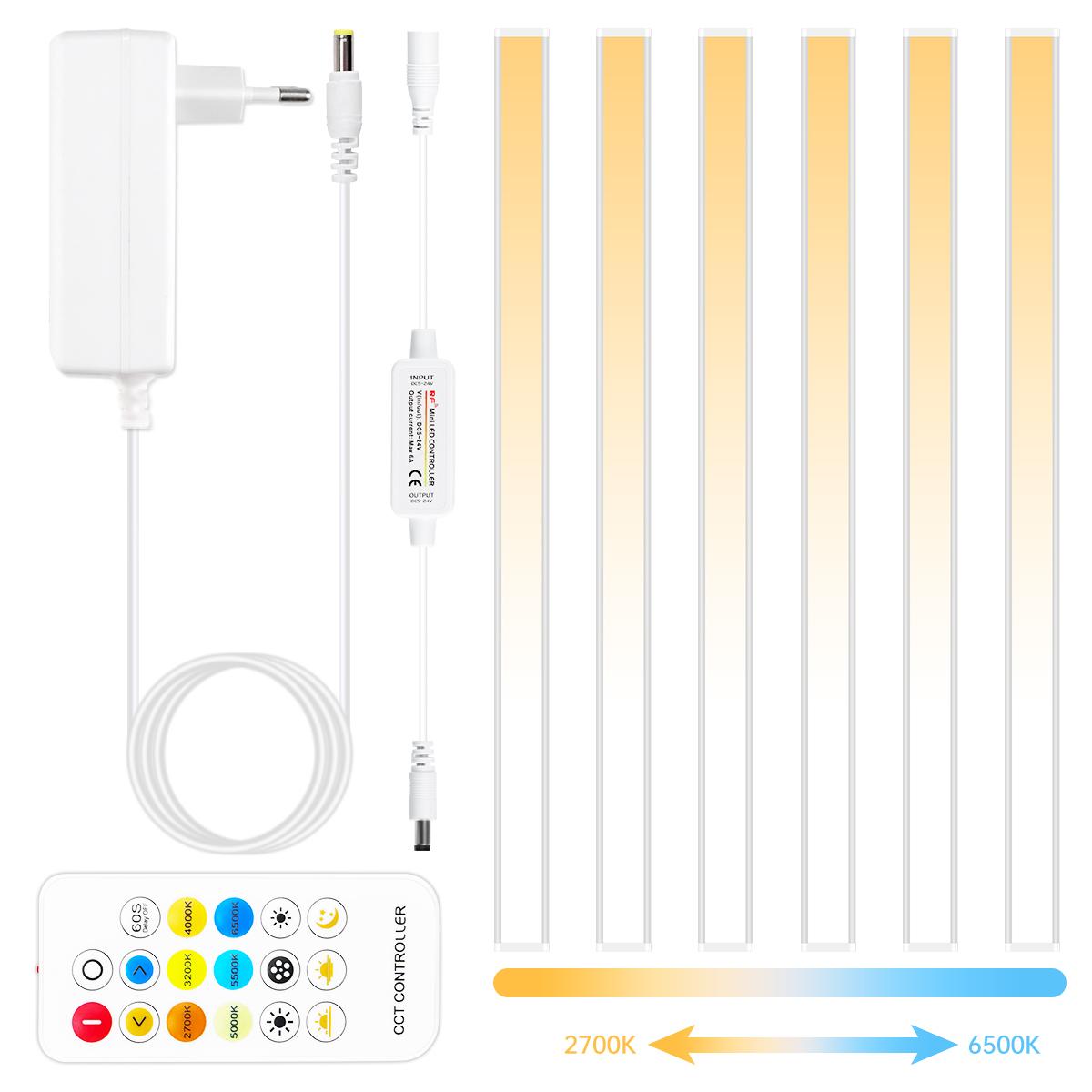 Светодиодная лента DC24V CCT с регулировкой яркости для подсветки под шкафами, 48 см, соединяемая, алюминиевая, 2700K-6500K, пульт дистанционного управления, лампа для кухонной столешницы и верстака