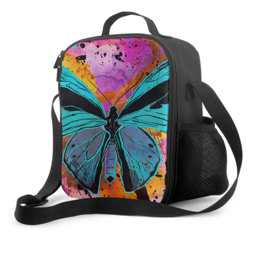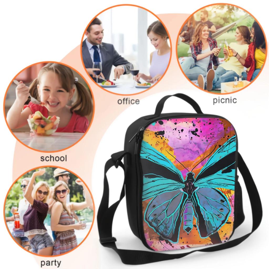 Масляная живопись Синяя бабочка Изолированные термо-ланч-сумки для мальчиков и девочек Моющаяся сумка-тоут Контейнер для еды на обед для школы и путешествий