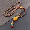 Винтажные этнические украшения для вечеринки, ручная работа, буддийская мала, деревянные бусины, подвеска в виде рога, рыбы, Непал, ожерелье