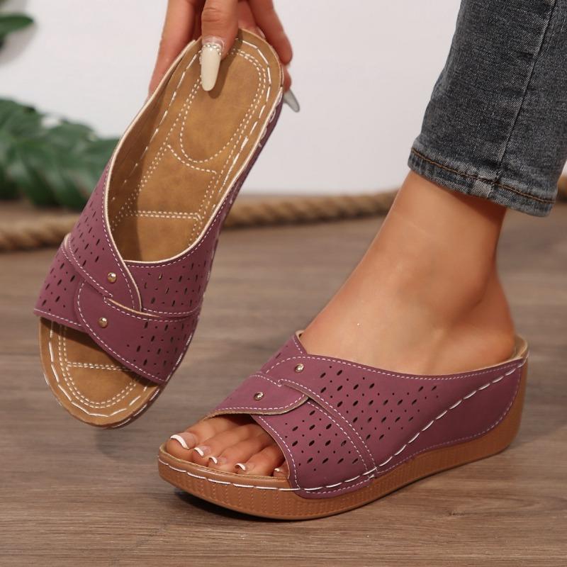 Туфли на танкетке Туфли с выемками Однотонные тапочки Женские заклепки с открытым носком Легкие пляжные шлепанцы на толстой подошве