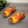 Сандалии большого размера с цветными блоками. Женские туфли на толстой подошве. Туфли на танкетке. Пляжные шлепанцы на липучках и шнуровке.