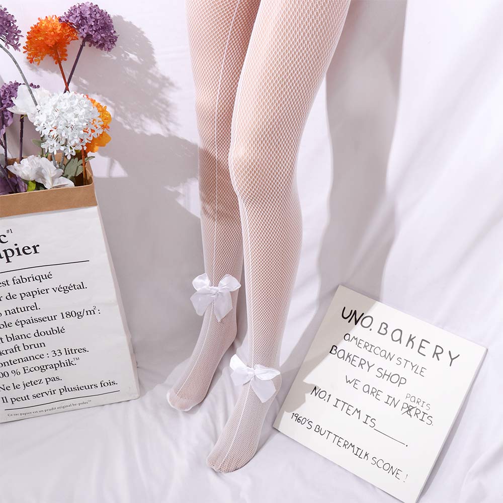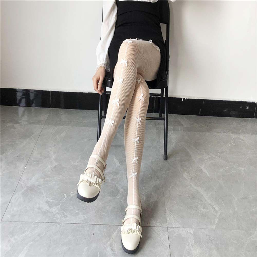 Шелк Ажурные Кружева Белый бант Женские колготки Чулки с принтом Носки Сетчатые носки