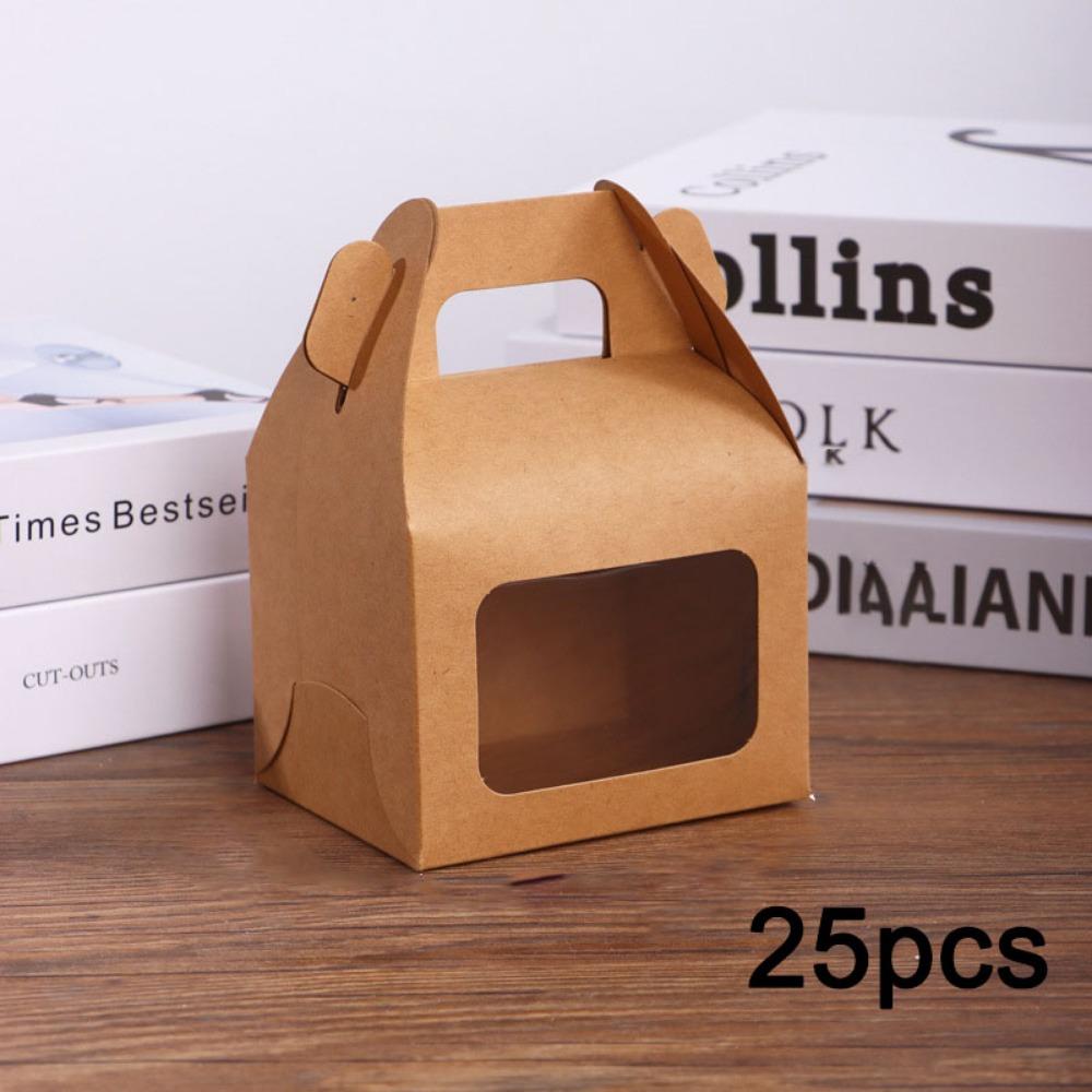 25 шт. коробка-домик с окошком, крафтовые коробки для угощений, коробки для подарков на вечеринку, коробки для сладостей, для подарков, мыла, изготовления украшений, демонстрационная упаковка, подарочная коробка
