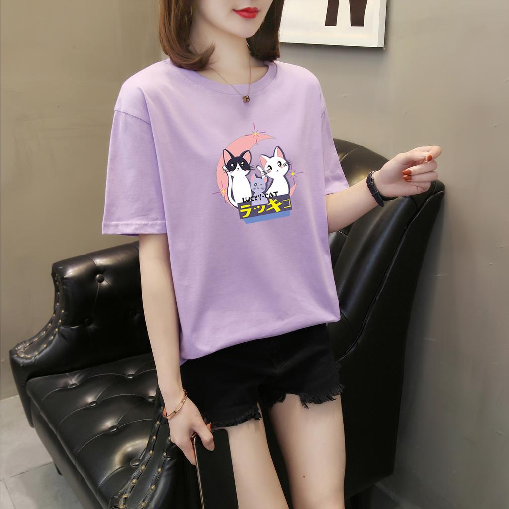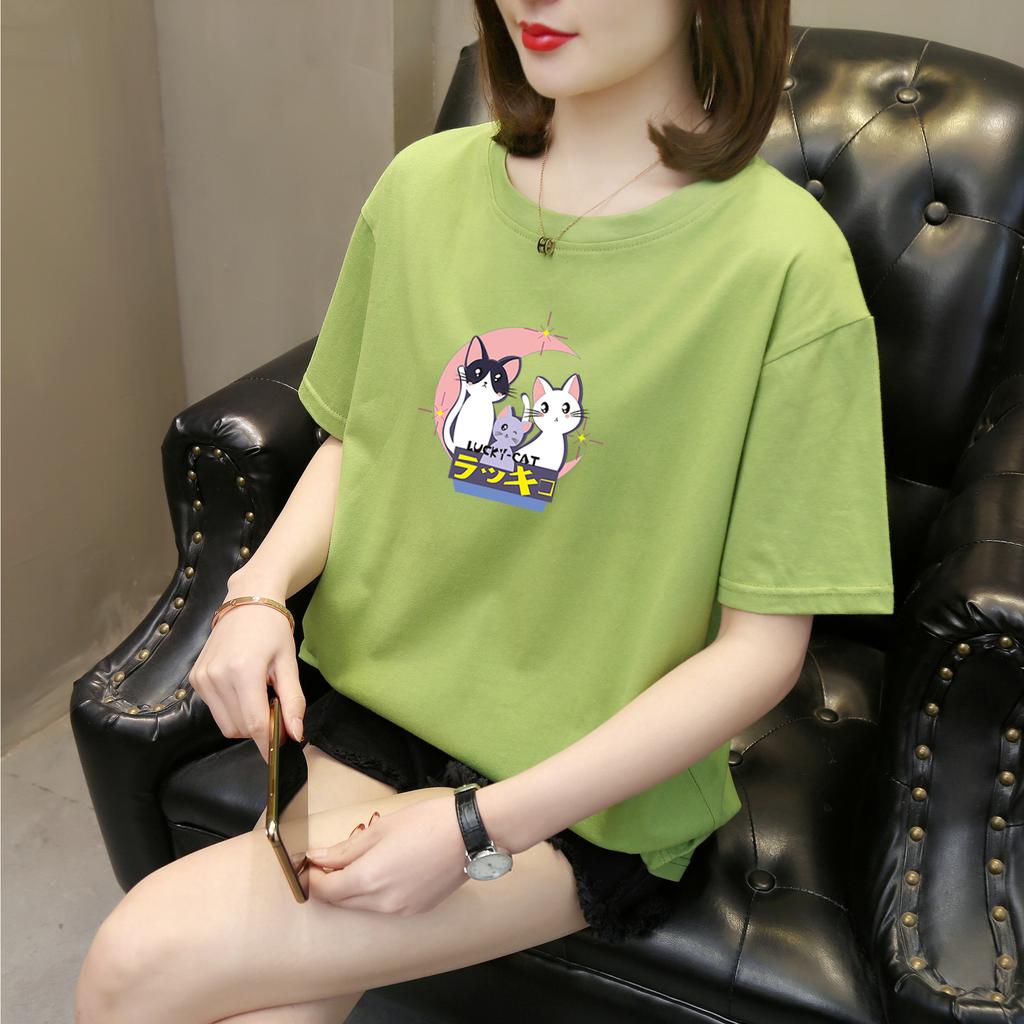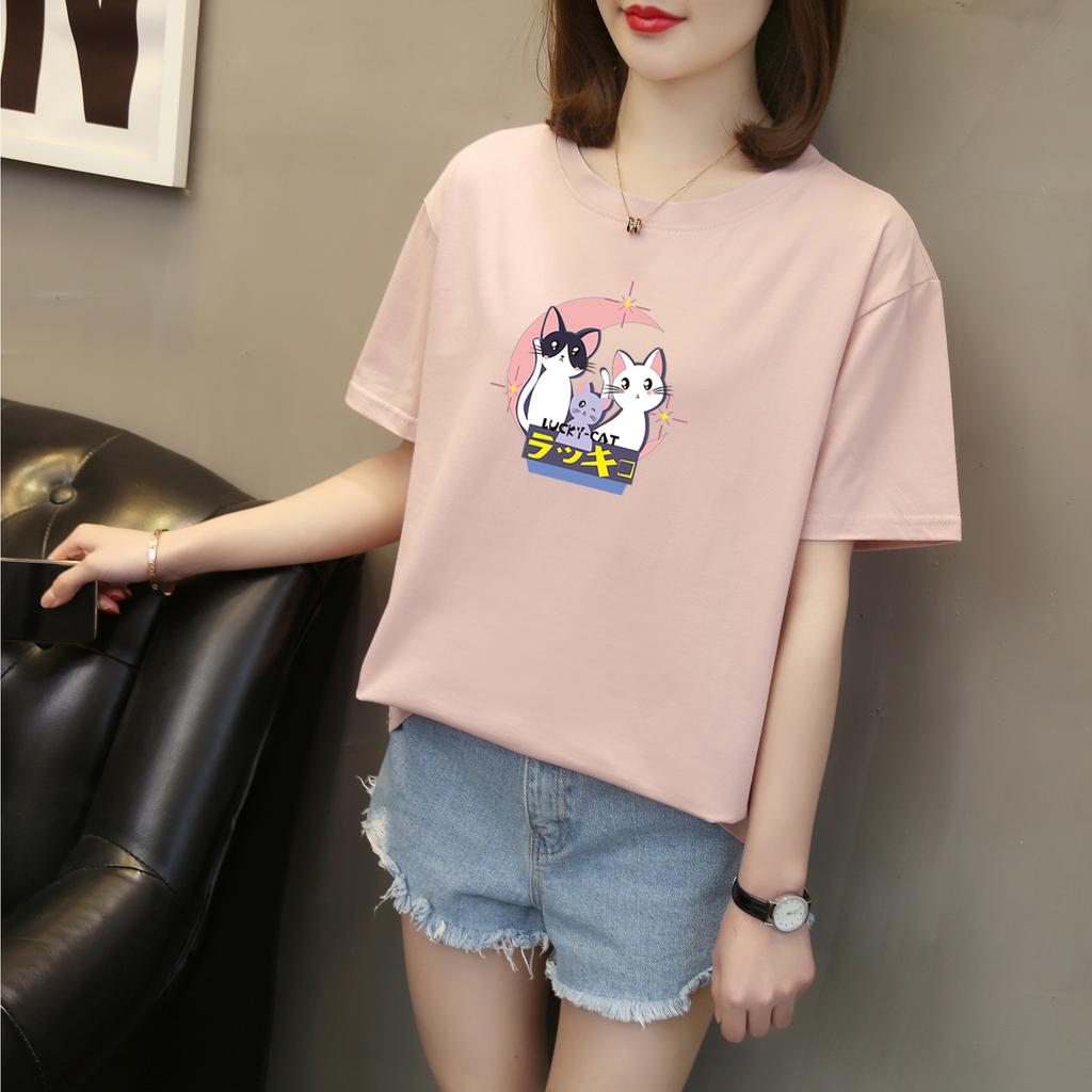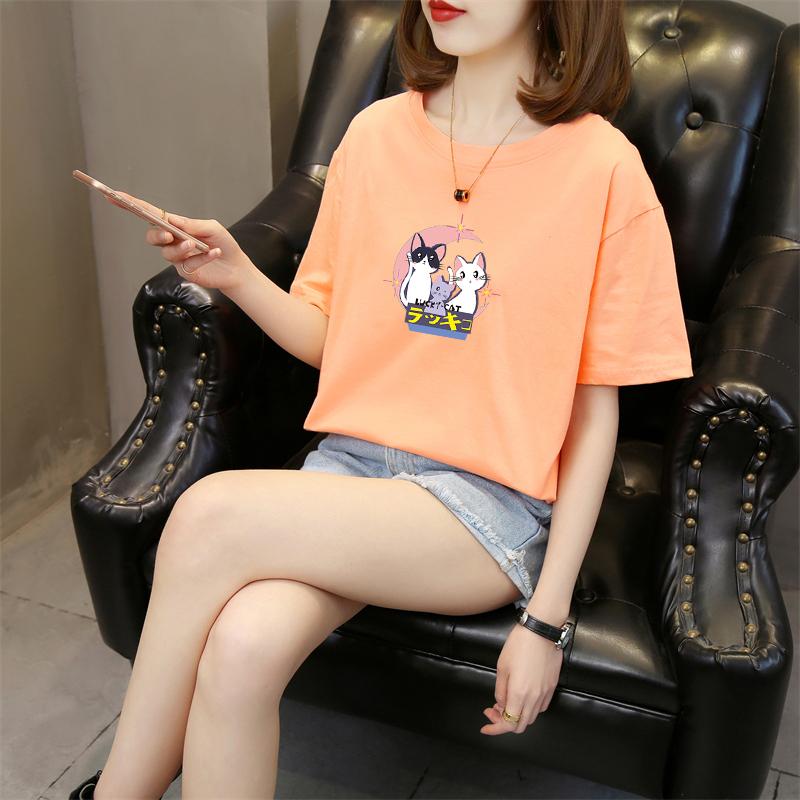 Харадзюку милый мультяшный принт Футболки с коротким рукавом Женские Летние из чистого хлопка Повседневные свободные студенческие Футболки Женские Y2k Топы
