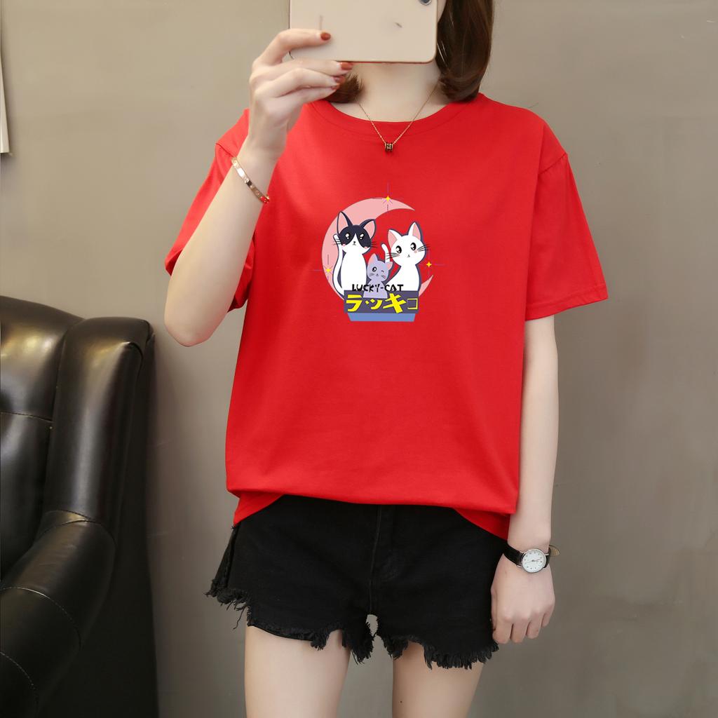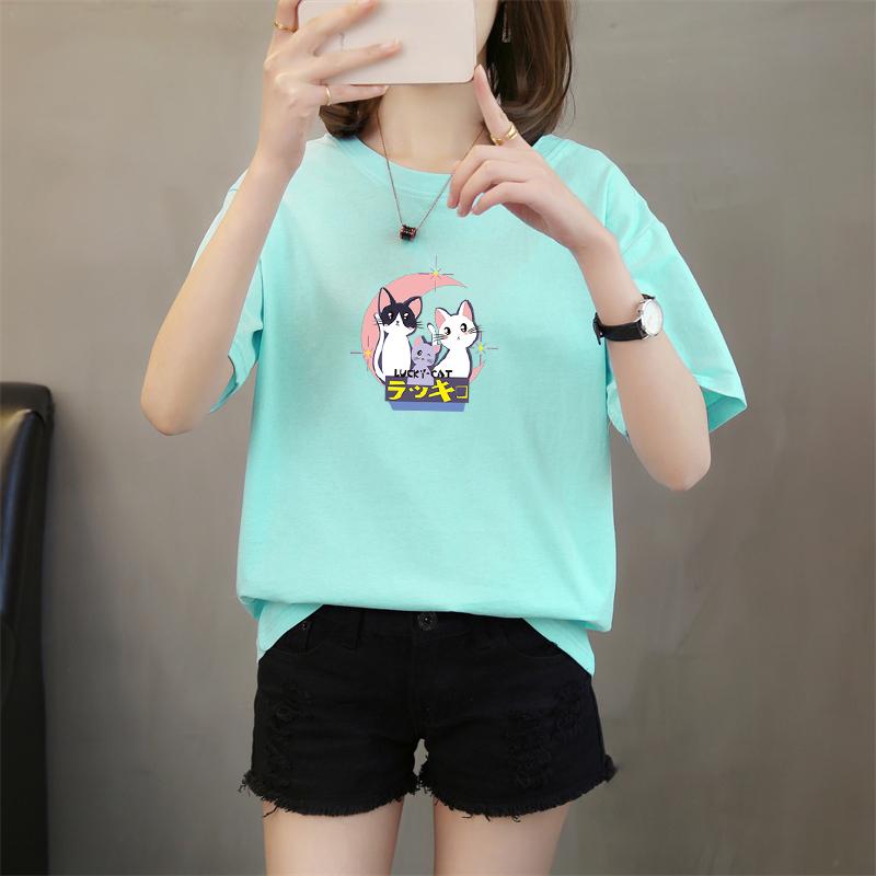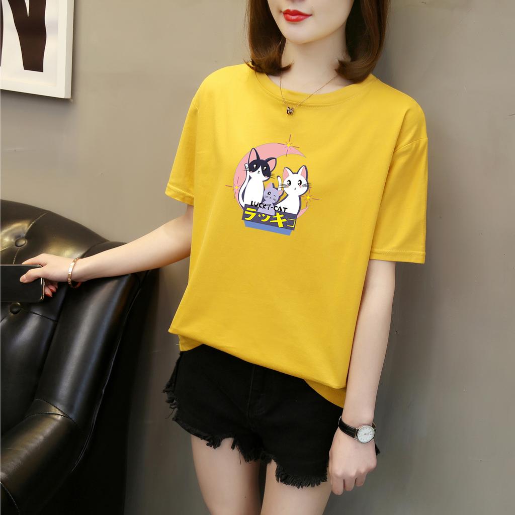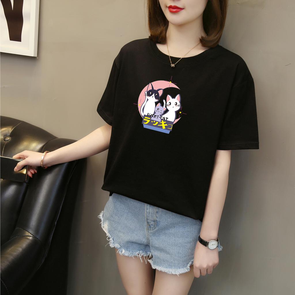 Харадзюку милый мультяшный принт Футболки с коротким рукавом Женские Летние из чистого хлопка Повседневные свободные студенческие Футболки Женские Y2k Топы