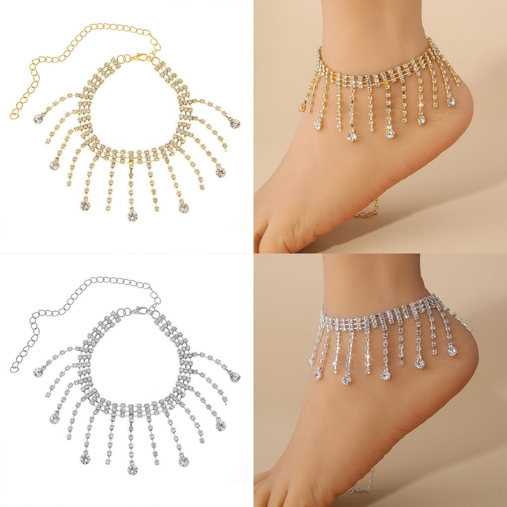 Украшения для ног со стразами, регулируемый браслет на щиколотку, браслет на щиколотку в форме двойного хрустального сердца
