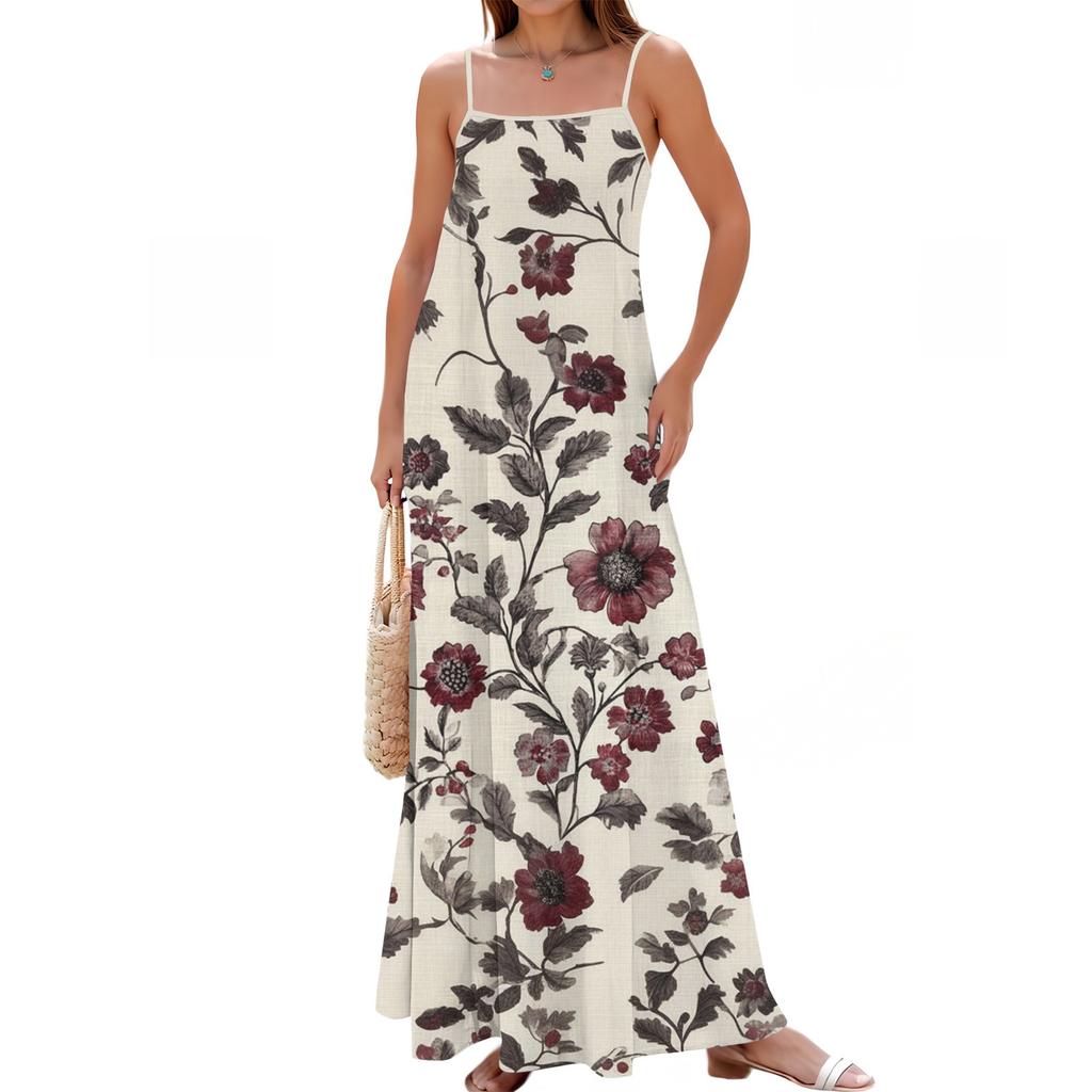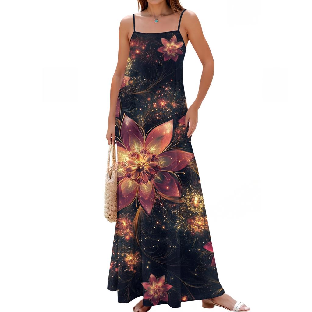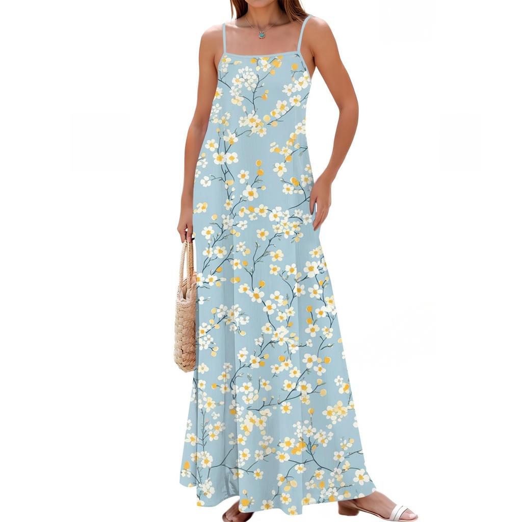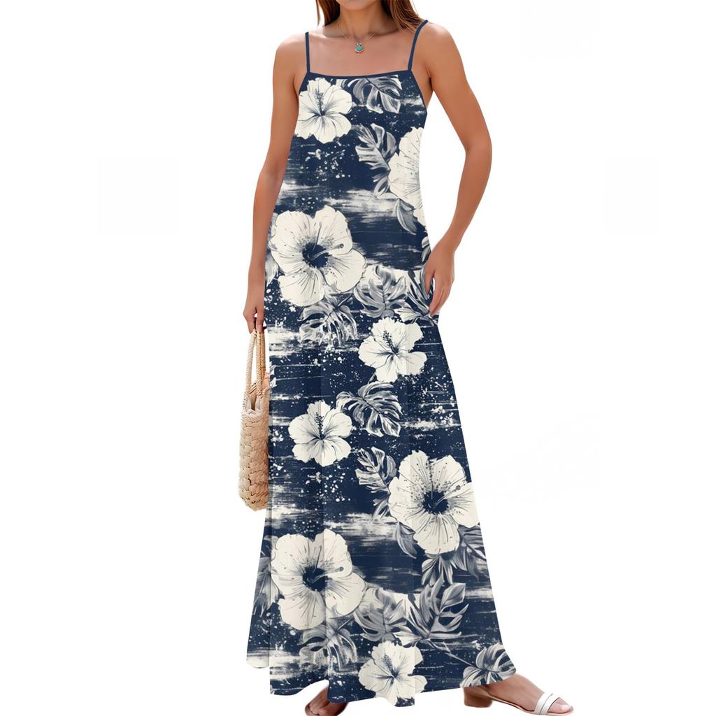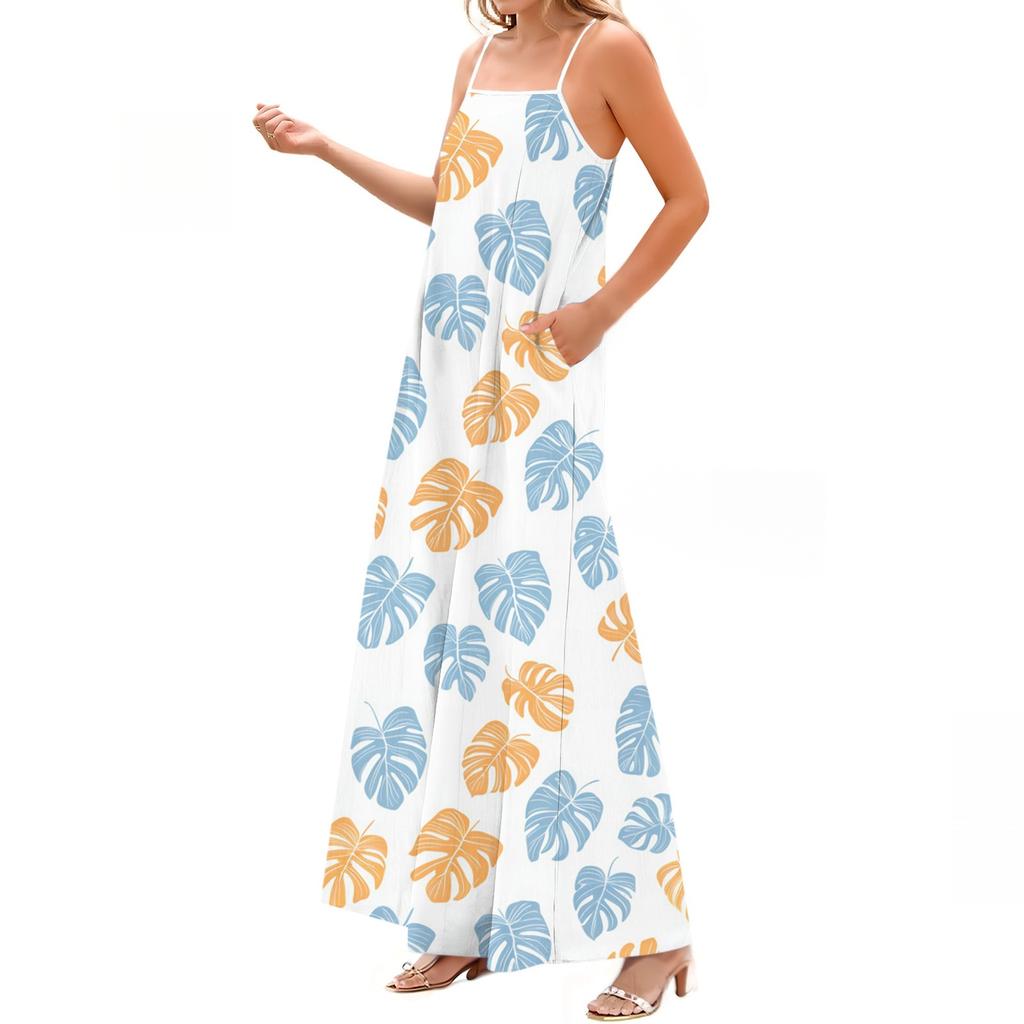 Женское весенне-летнее повседневное модное длинное платье с регулируемыми подтяжками и принтом