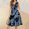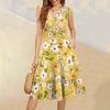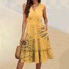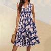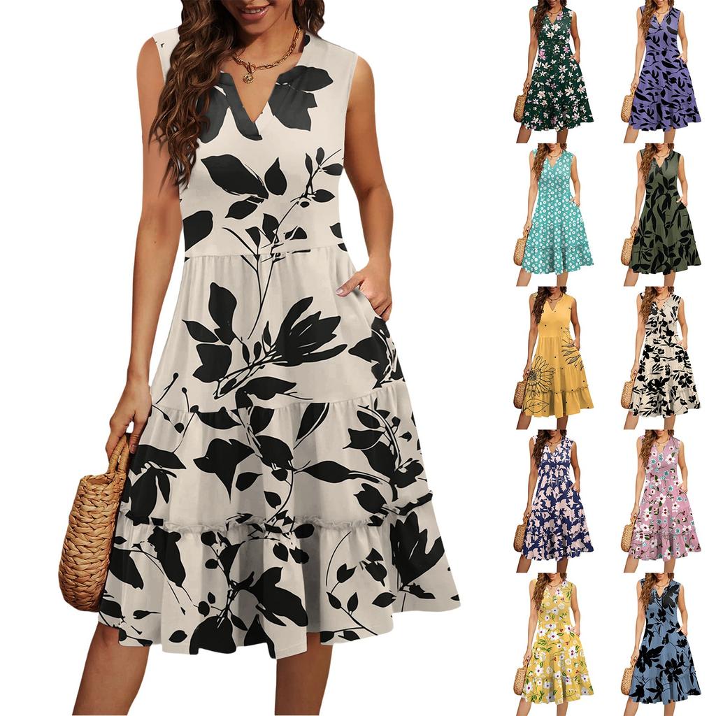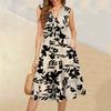 Женские летние повседневные платья без рукавов с V-образным вырезом и плиссированными оборками в винтажном стиле с цветочным принтом