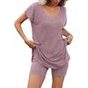 Женский летний комплект из двух частей с шортами, трикотажный домашний спортивный костюм с V-образным вырезом