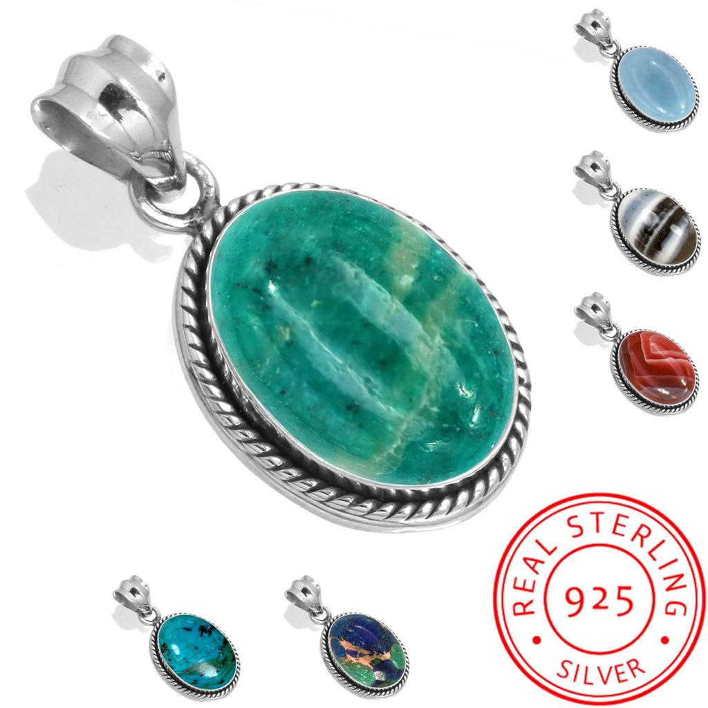 Кулон из стерлингового серебра 925 пробы для женщин, драгоценный камень, украшения ручной работы, подарок на Хэллоуин, амазонит, ангелит, голубой опал, ботсванский агат, мохавский азурит, хризоколла — купить товар онлайн с бесплатной доставкой по всему миру!