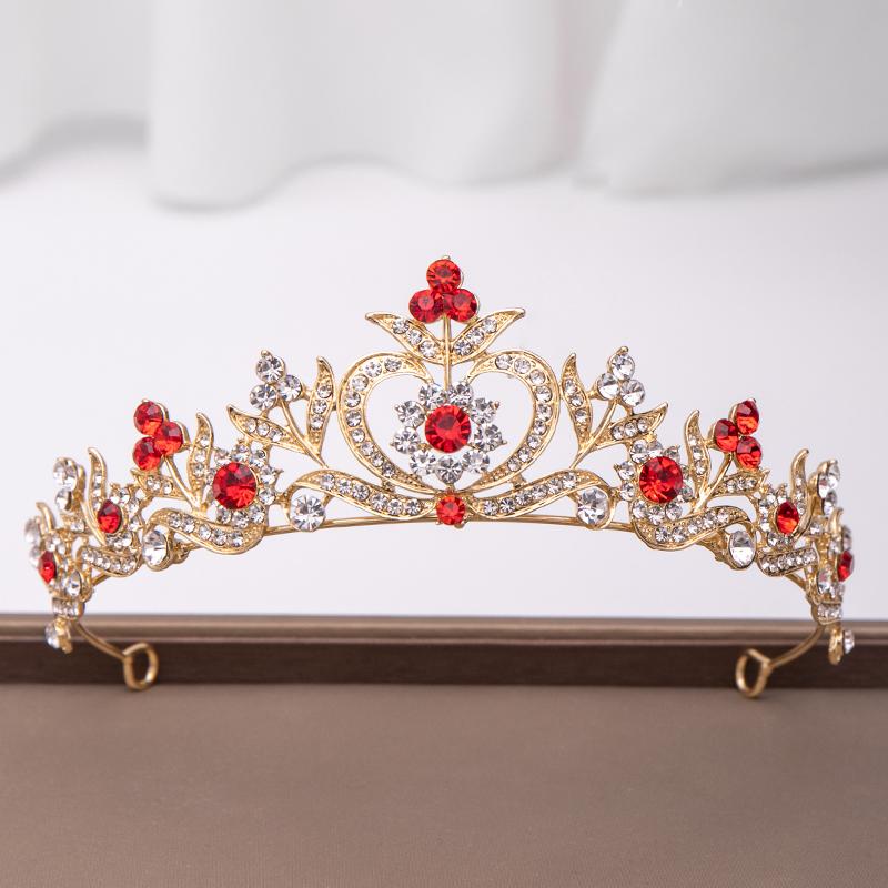Модный золотой красный горный хрусталь хрустальная корона цветок свадебные аксессуары для волос свадебный головной убор украшения для волос невесты украшения для волос корона