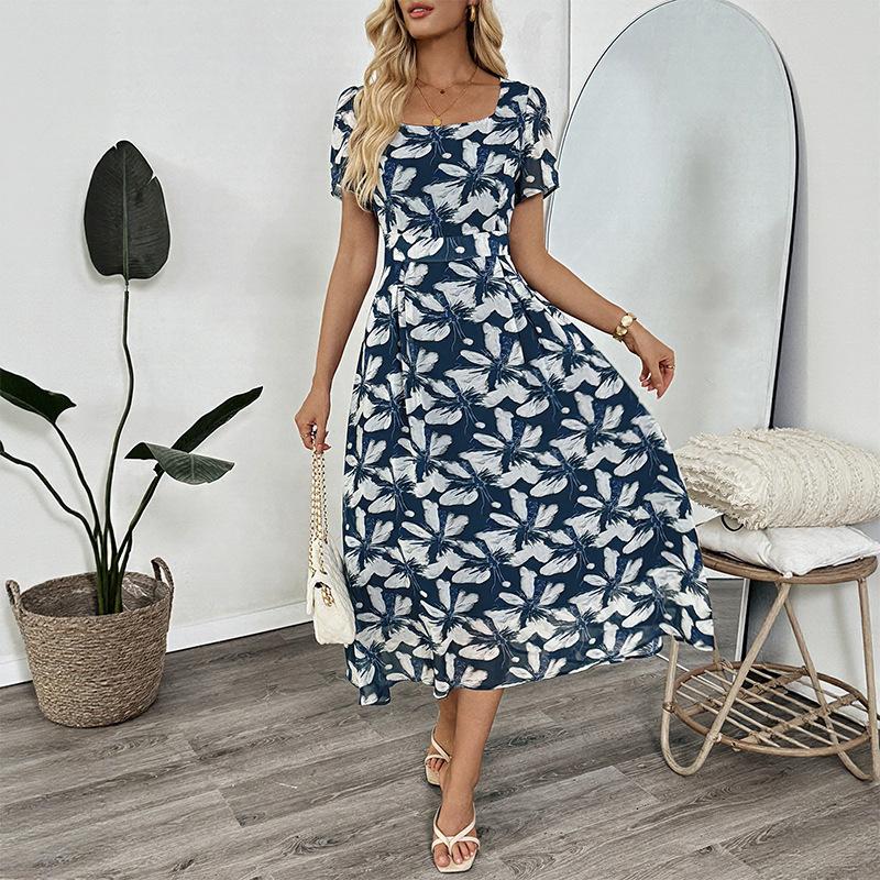 JKASHDK Женская мода лето весна цветочный узор принт короткий рукав квадратный воротник Высокая талия повседневные платья — купить товар онлайн с бесплатной доставкой по всему миру!