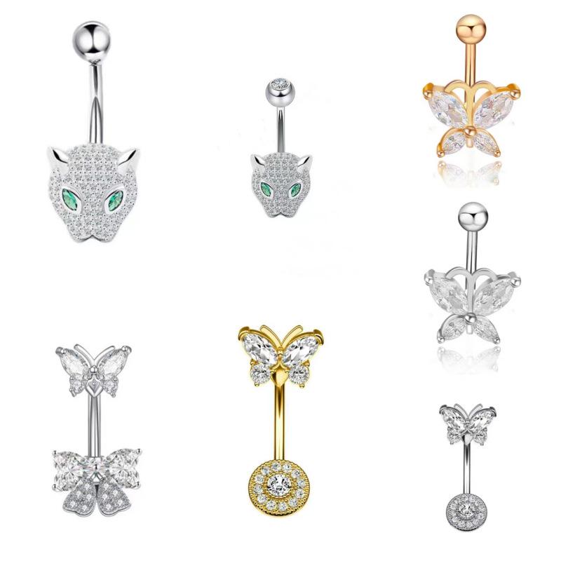 Европейский и американский пирсинг пупка с головой леопарда и циркониевым бантом - Сексуальное украшение для пирсинга тела для женщин