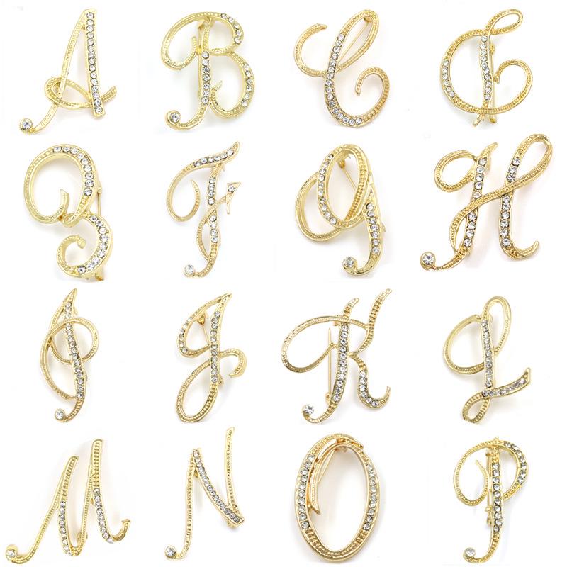 Европейская и американская модная брошь: Английские буквы с инкрустацией бриллиантами