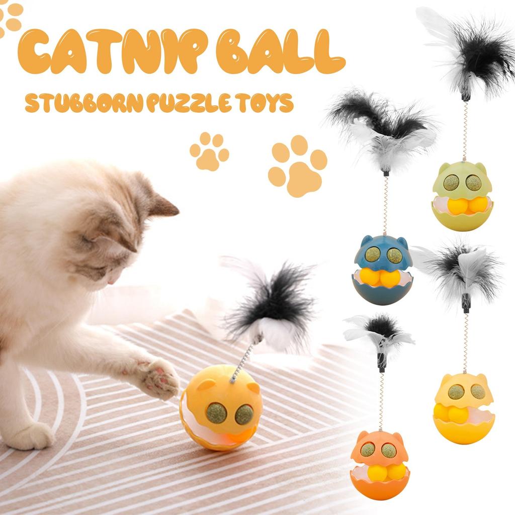 Неваляшка для кошек, веселый шарик из кошачьей мяты, чтобы избавиться от скуки, игрушка для кошек с перьями, товары для домашних животных
