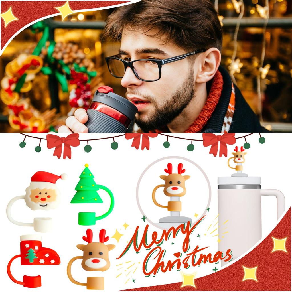 10 мм 3D рождественский чехол для соломинки силиконовый чехол для соломинки 10 мм 0,4 дюйма пыленепроницаемые многоразовые крышки для соломинок