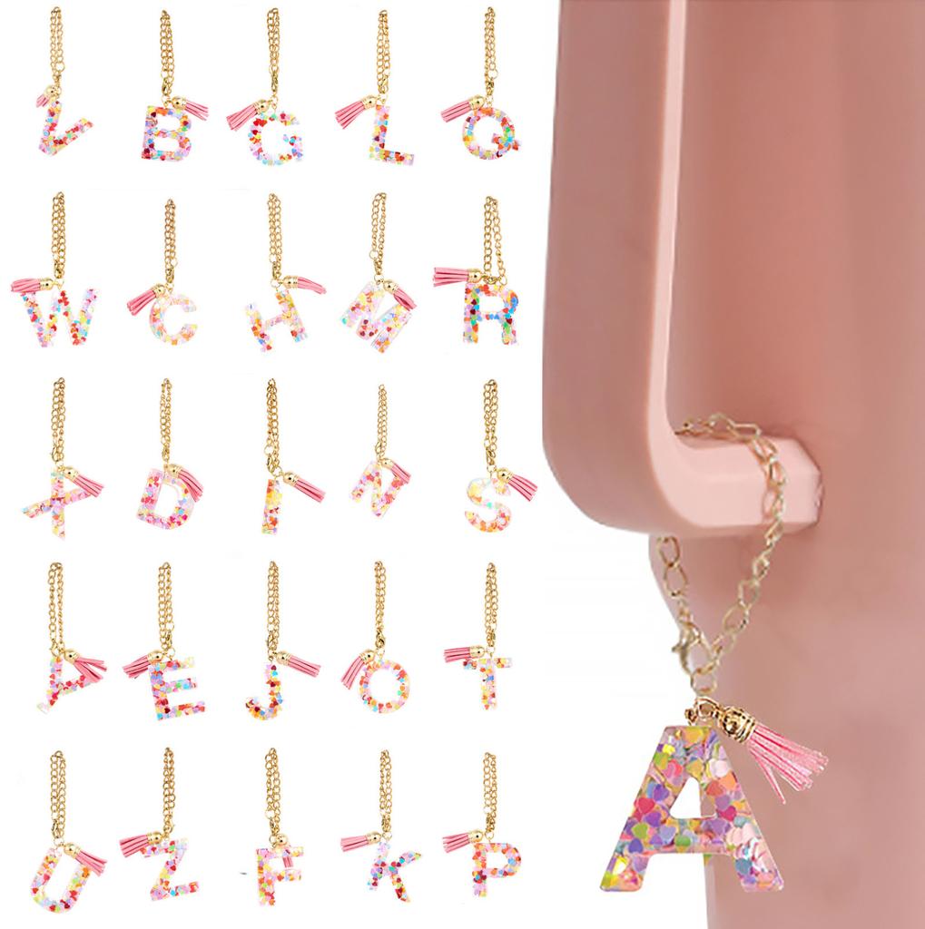 Аксессуары-подвески с буквами для 1 шт., милый начальный брелок с ручкой, подвеска для стакана для женщин и девочек