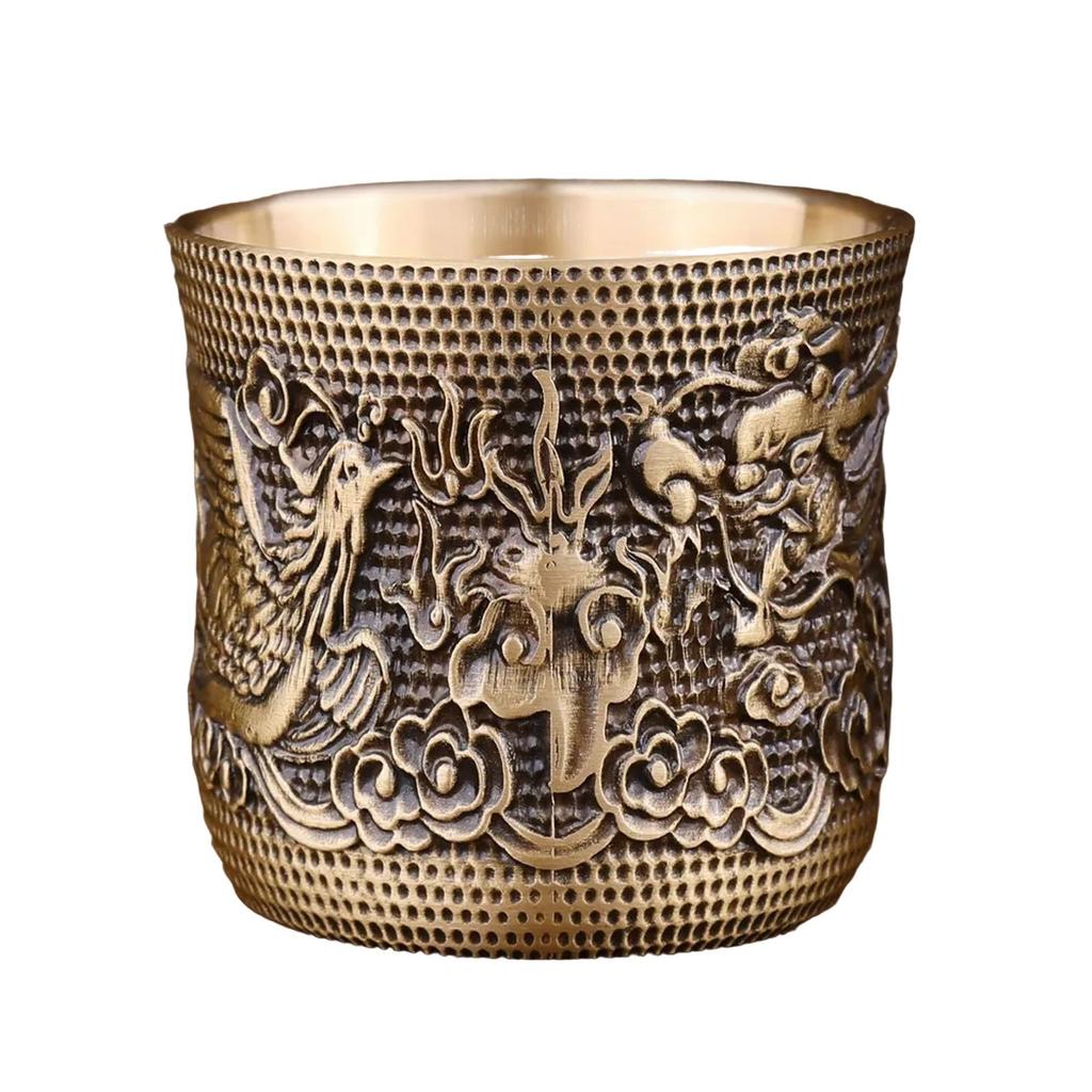 Антикварный рельефный дракон и благоприятная тонкая талия чашка украшение для чайного стола медная чашка китайская маленькая талия чашка
