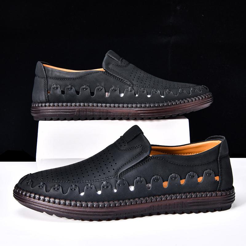 Мужская повседневная обувь из натуральной кожи без шнуровки, летние туфли большого размера, 39-48