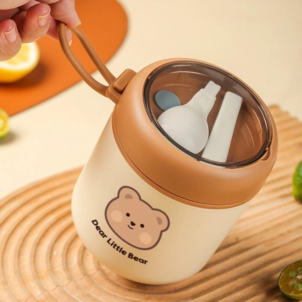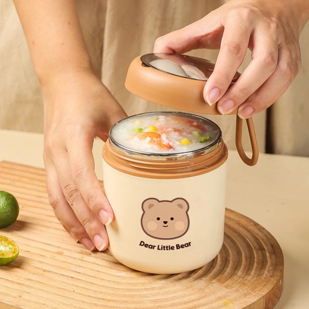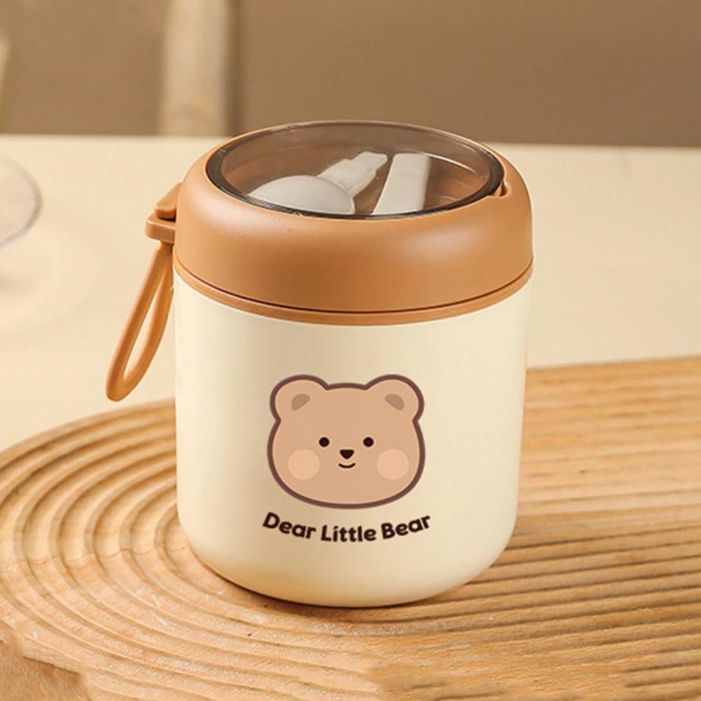 Ланч-бокс бенто из нержавеющей стали со складной ложкой-ручкой, милый медведь, герметичный контейнер для еды, термос для горячей или холодной пищи