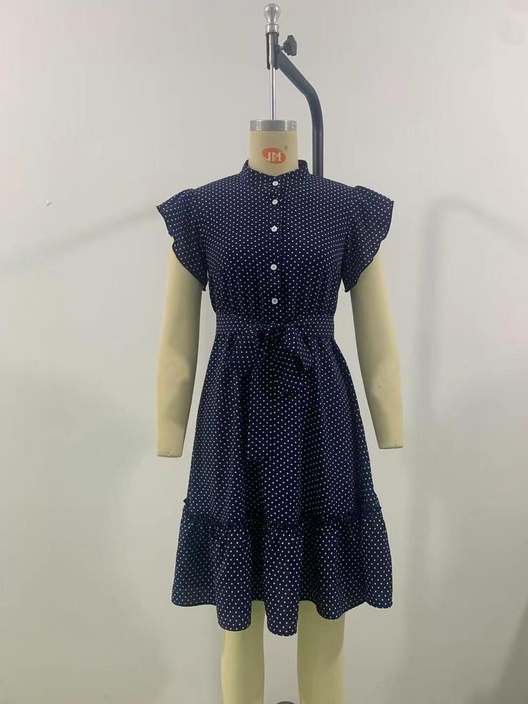 Летнее элегантное миди-платье А-силуэта с рукавами-рюшами в горошек для женщин, 2025