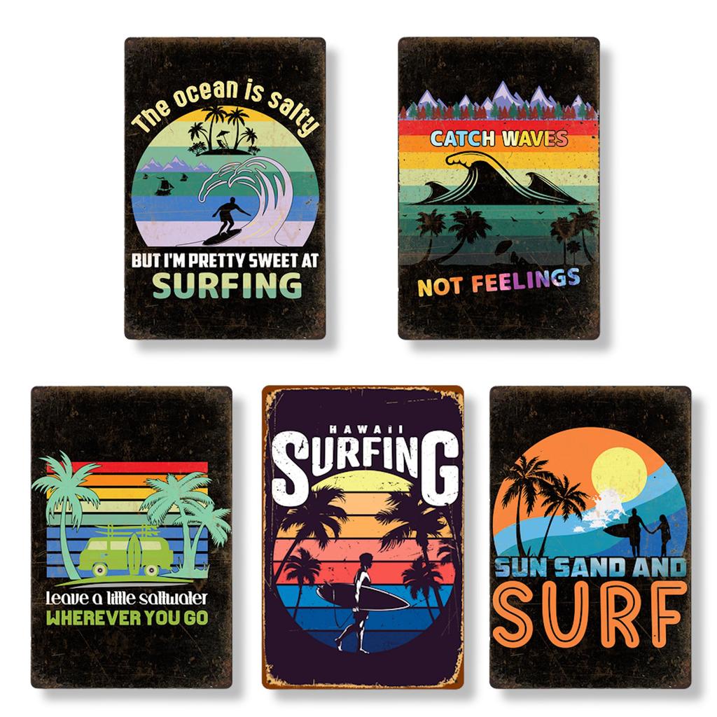 Лезлик Металлическая табличка Серф Пляж Настенное украшение Американская тарелка Интерьер Ретро Товары Винтаж Антиквариат (SURF3)