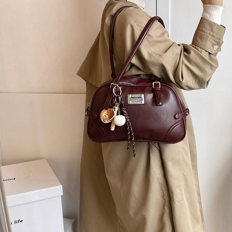 Сумка-боулинг премиум-класса большой вместимости женская 2025 новая модная текстурная сумка на плечо ручная сумка