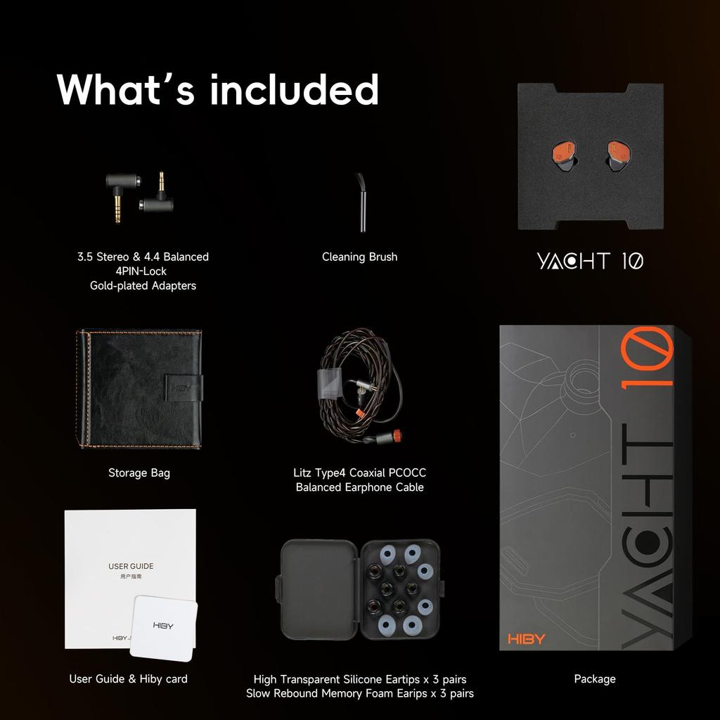 Наушники HiBy yacht10 поставляются с 3 парами прозрачных силиконовых насадок с коротким звуководом и 3 парами насадок из пены с памятью формы. Они доступны в трех размерах: S, M и L. Для мужчин мы рекомендуем выбирать силиконовые или пенные амбушюры среднего или большого размера, так как их слуховые проходы обычно больше.. Для женщин лучше подойдут размеры поменьше. При ношении высокоэластичные силиконовые вкладыши просто нужно вставить вдоль естественного изгиба слухового прохода и подождать, пока они не примут первоначальную форму.. Поролоновые насадки, обеспечивающие плотное прилегание, можно сжать, чтобы уменьшить их размер, вставить в слуховой проход и отрегулировать их положение после расширения.