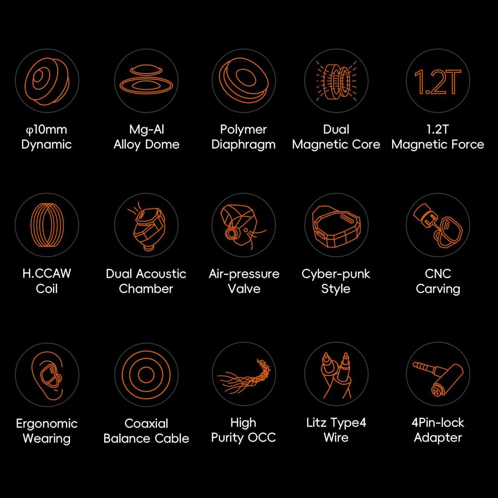 Для динамических динамиков важен сбалансированный воздушный поток для улучшения тембральной естественности и звуковой сцены. Этот 10-мм магниево-алюминиевый купольный высокоэффективный композитный динамик имеет переработанную низкую стоячую волну. (Л.С.В.) металлический задний отсек. Тонкая настройка объема впуска и воздушного потока улучшает динамику динамика для более приятного прослушивания.