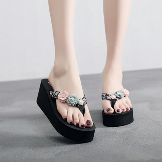 Лето 2018 г., женские сандалии на толстой подошве с нескользящей подошвой и высоким каблуком в стиле знаменитостей для ношения на открытом воздухе