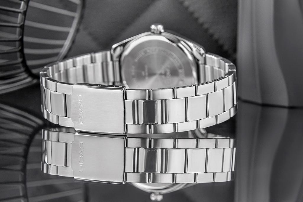 Model należy do kolekcji Casio Classic, która charakteryzuje się eleganckimi, prostymi wzorami stawiającymi na ponadczasowy styl. Srebrna koperta pięknie harmonizuje z fioletową metaliczną tarczą, tworząc ponadczasowy kontrast idealny zarówno do formalnych, jak i codziennych stylizacji. Delikatny połysk srebrnych indeksów i wskazówek, które dodatkowo wypełniono fluorescencyjną powłoką, zapewnia doskonałą czytelność także w warunkach słabego oświetlenia. Całość dopełnia solidna, srebrna bransoleta wykonana ze stali nierdzewnej, która dodaje zegarkowi elegancji i sprawia, że jest on wygodny w noszeniu. Ten harmonijny dobór kolorów i detali sprawia, że model MTP-1302PD-6AVEF stanowi idealne połączenie klasyki i współczesnego stylu.