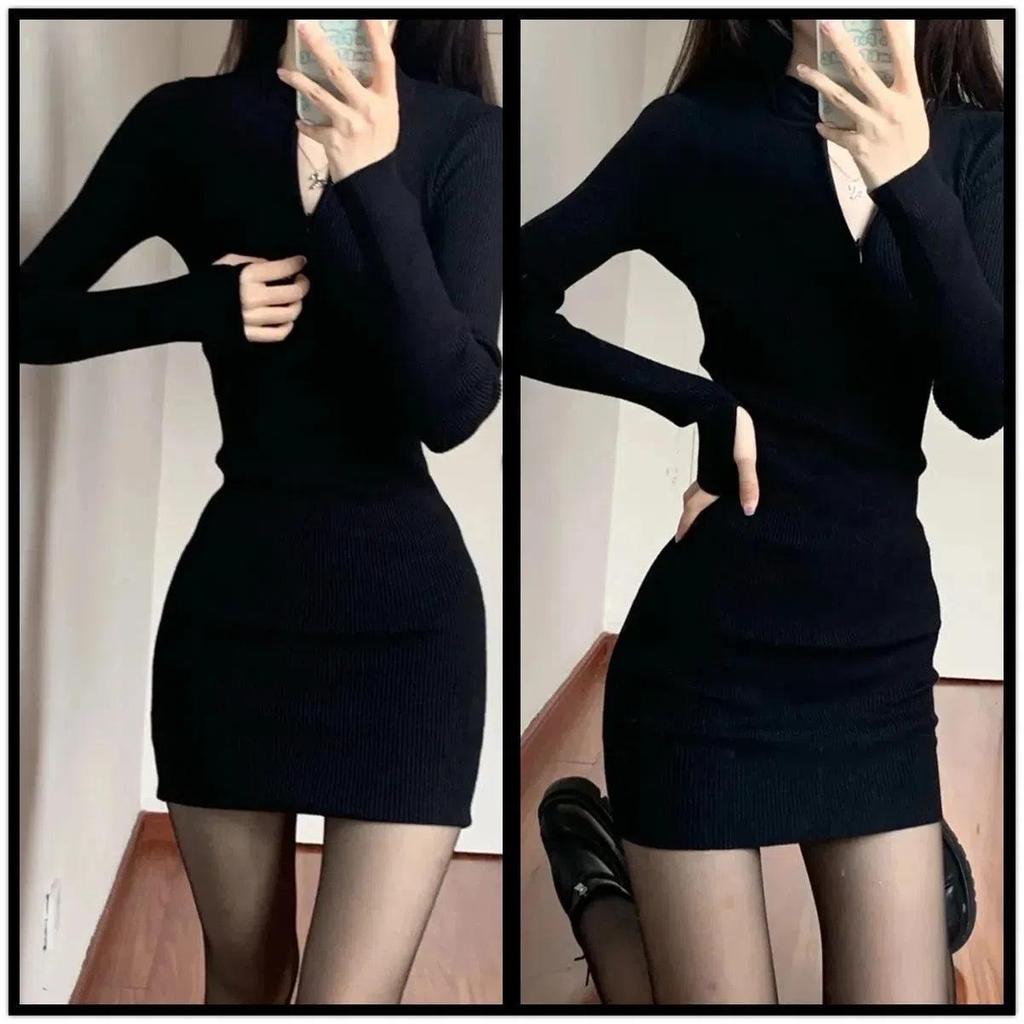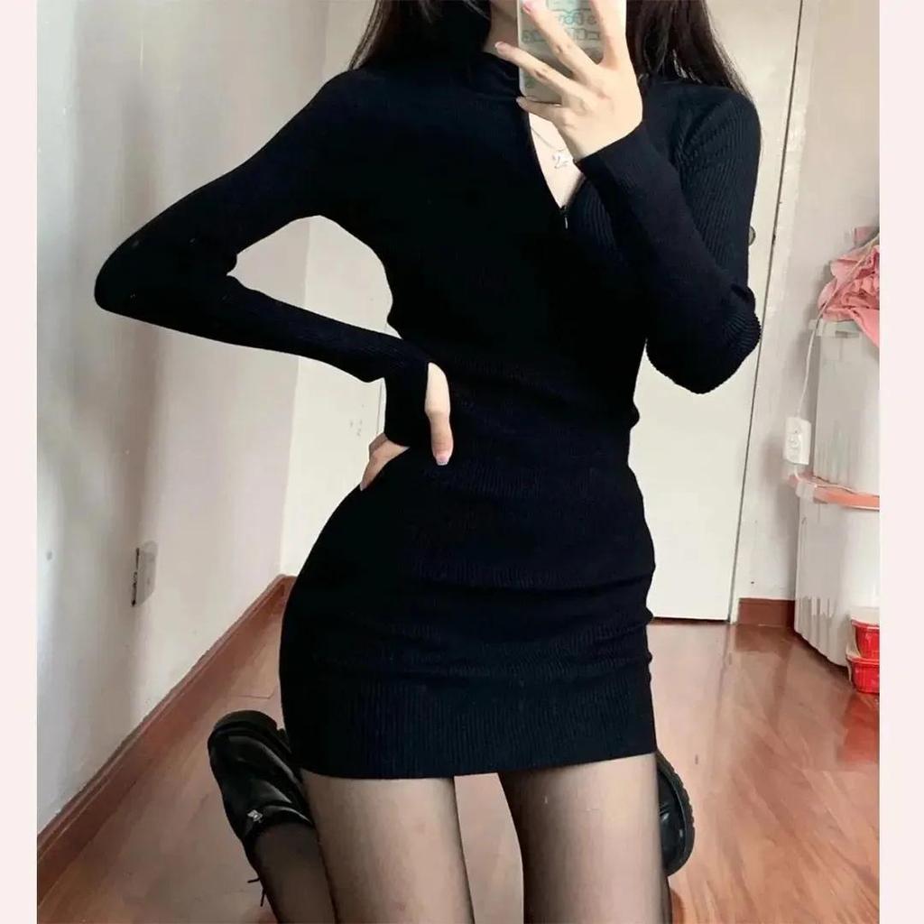 Черное облегающее платье с длинным рукавом и молнией - Сексуальный облегающий крой для осени и зимы