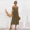 Женское летнее длинное платье однотонного цвета А-силуэта на тонких бретельках без рукавов с высокой талией и пуговицами, повседневное, милое, S-XL