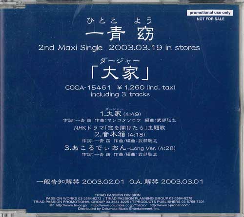 CD HITOTO YO - Da-ja- TDCL91816 COLUMBIA 2003 Japan Japanese Pop/Rock Used