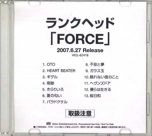 CD LUNKHEAD - Force NONE VICTOR 2007 Japan Japanese Pop/Rock Used