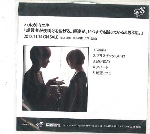 CD HARUKA TOMIYUKI Kyogen sha ga yoake wo tsugeru bo NONE HM RECORDS 2012 Japan Japanese PopRock Used