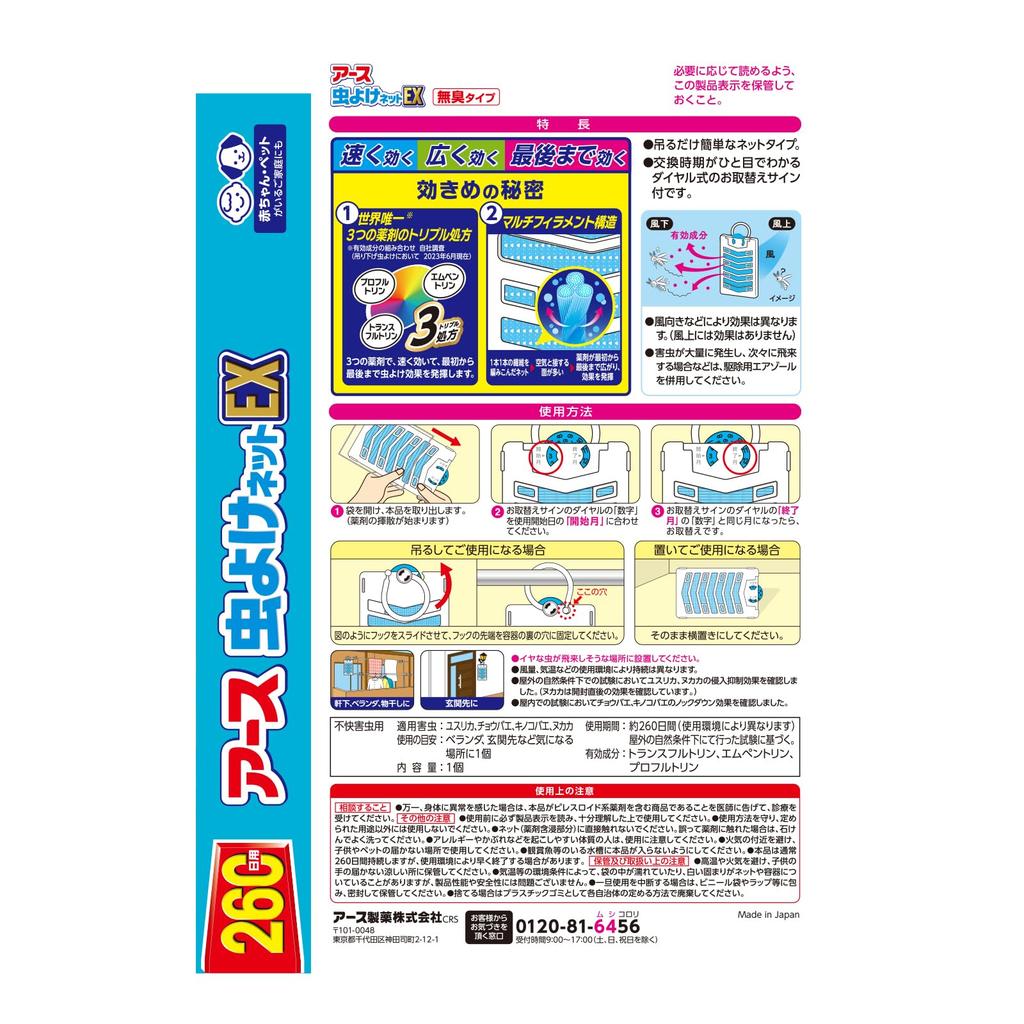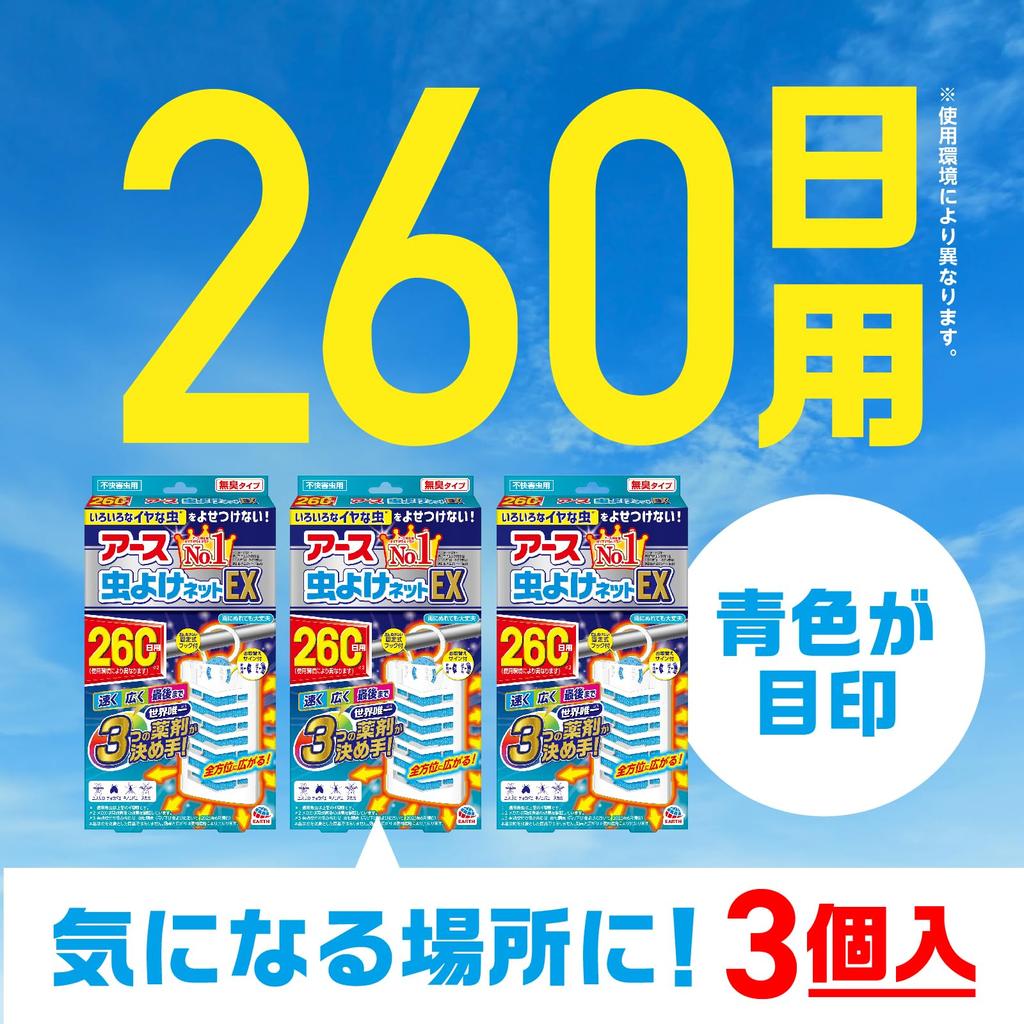 Средство от насекомых Earth Средство от насекомых Earth Сетка Средство от насекомых На 260 дней Набор из 3 штук Сетка, EX, Пластина, Балконы, Подвешивание, Использование,