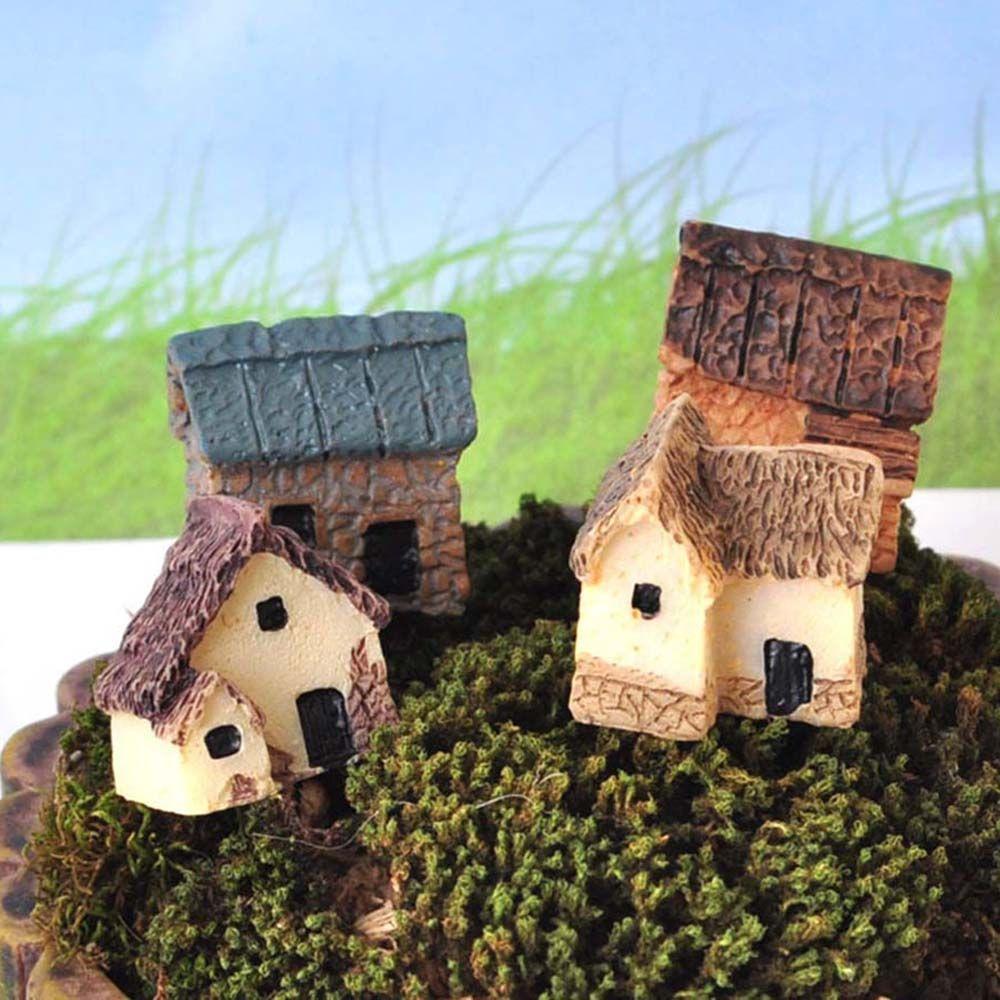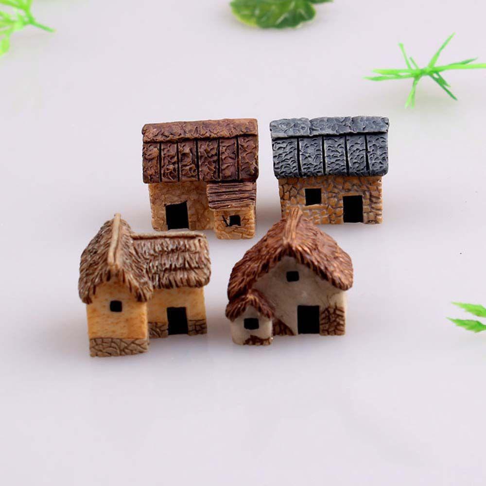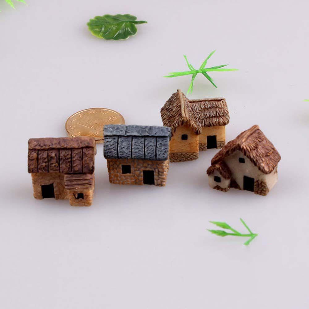 Микро 4 шт. Декорация Деревня Феи Пейзаж Каменные Дома Миниатюрные Миниатюрные Фигурки Домов