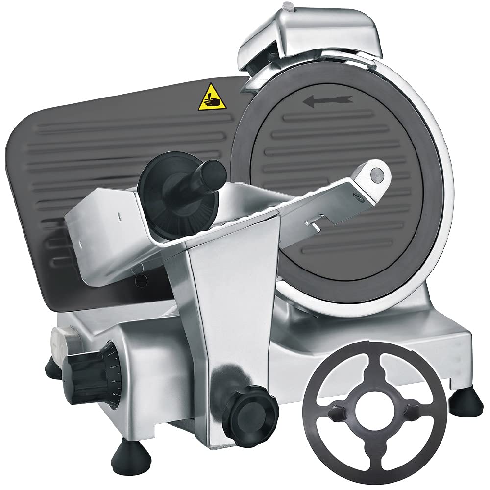 Профессиональный слайсер для мяса Серия Jet Black Электрический слайсер для мяса Лезвие с покрытием Серебристый KIPROSTAR Слайс сыровяленой ветчины (Фторопластовое лезвие) [Роторный 220мм] — купить товар онлайн с бесплатной доставкой до всему миру!