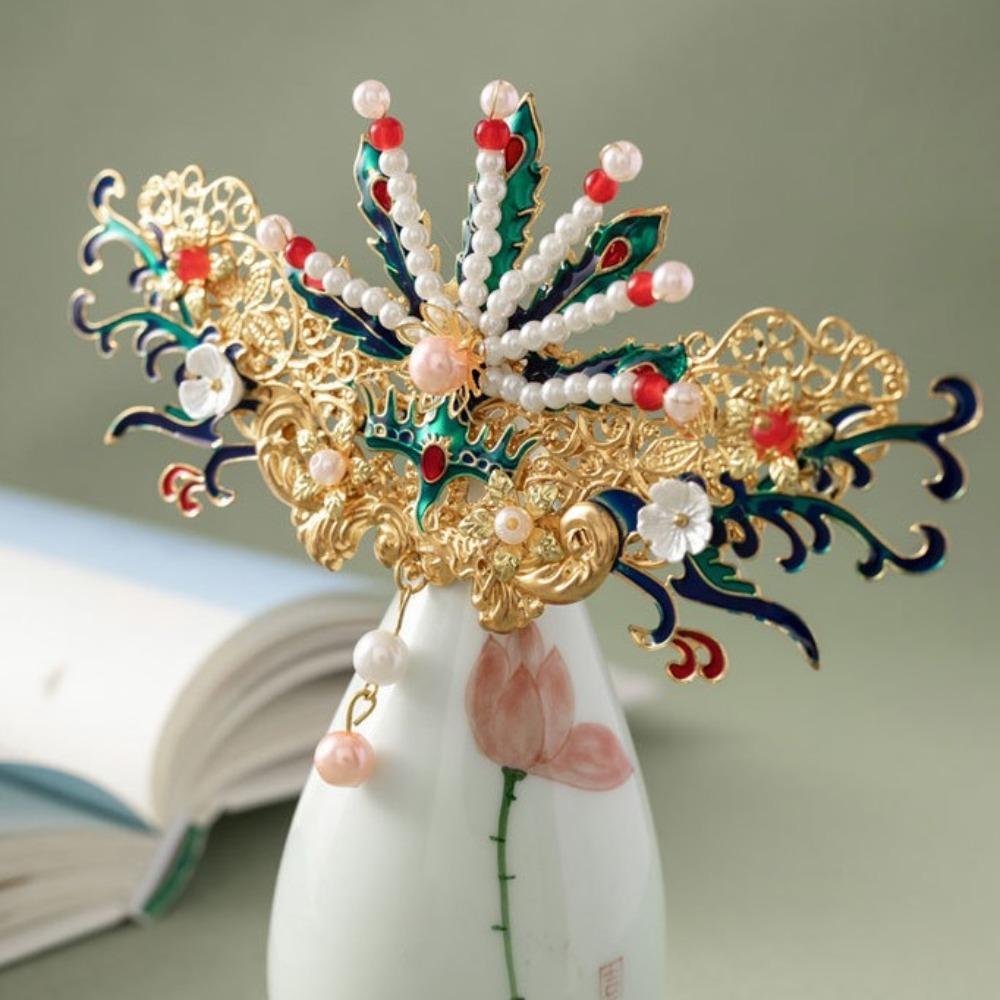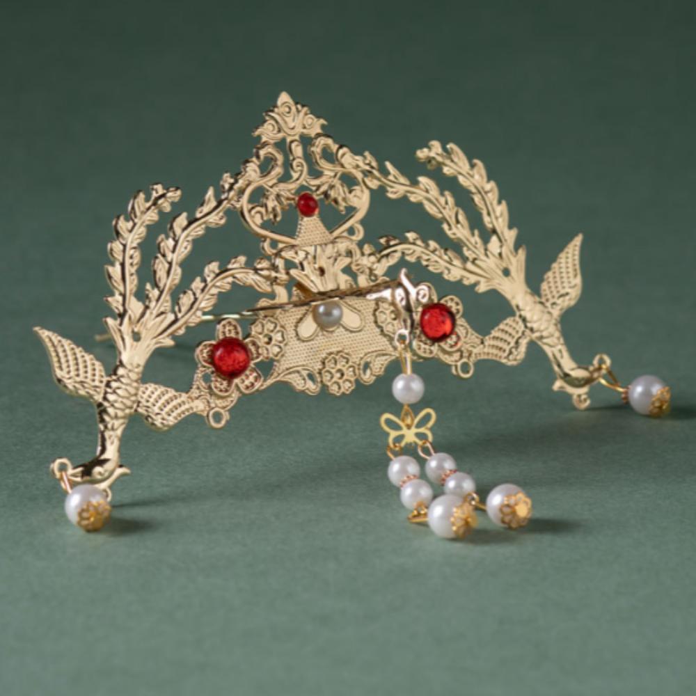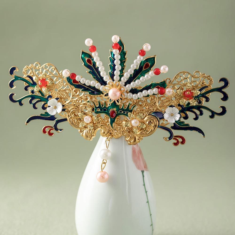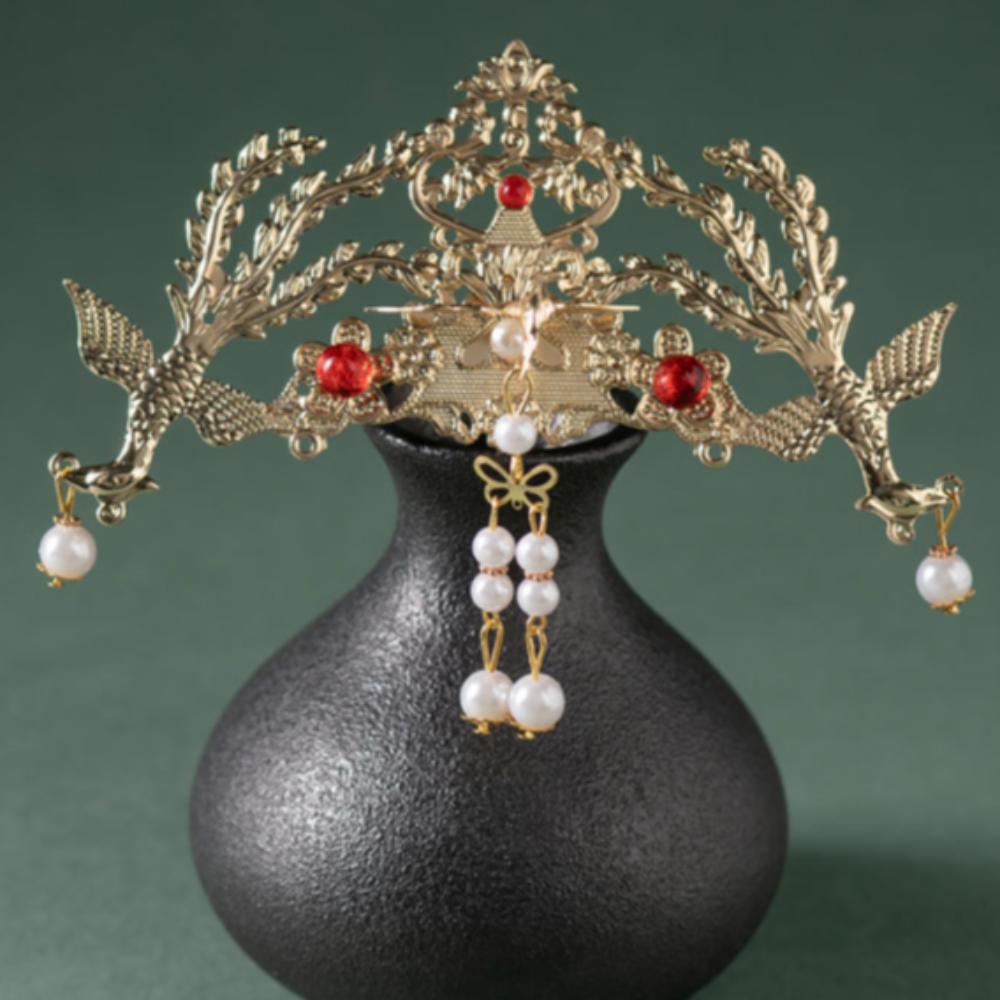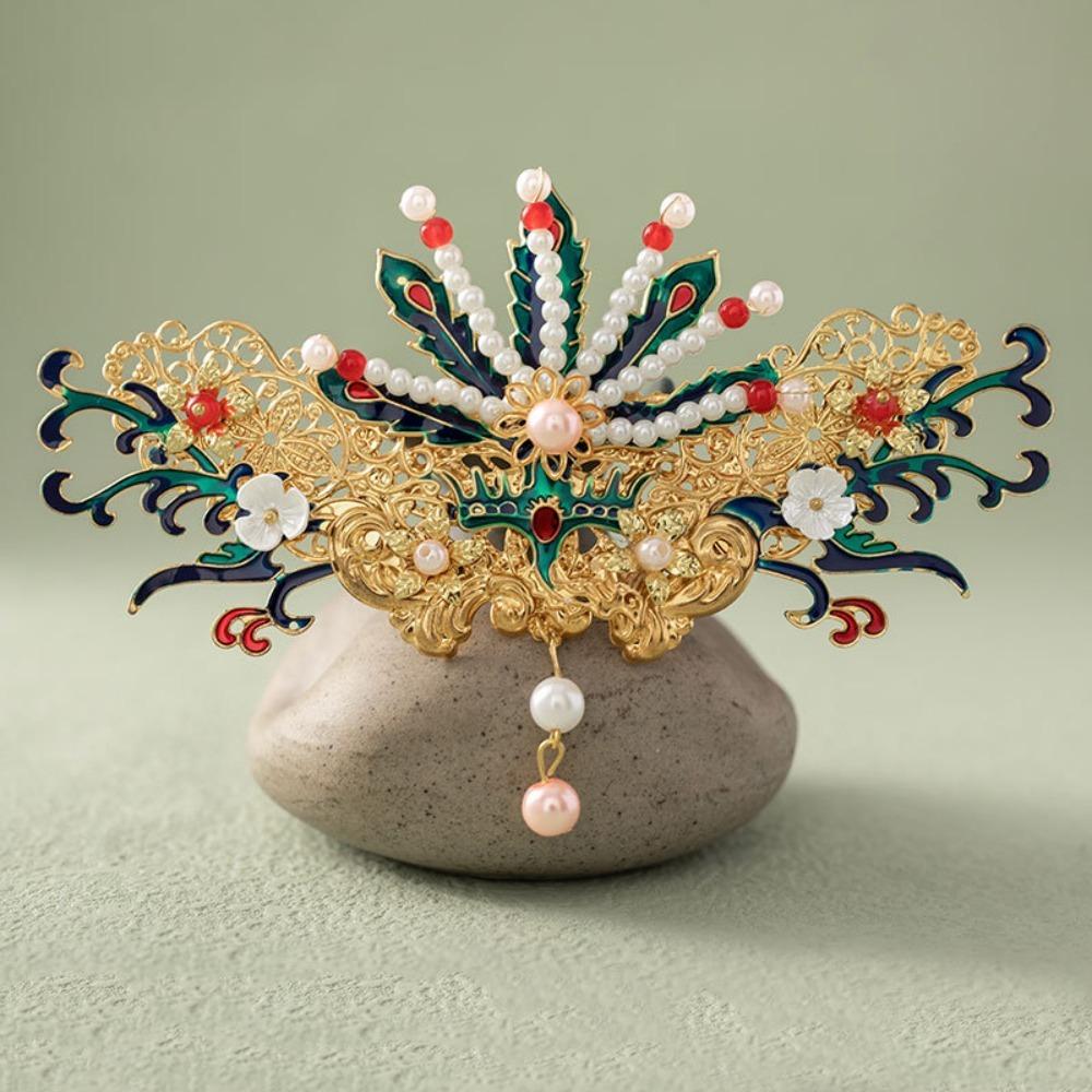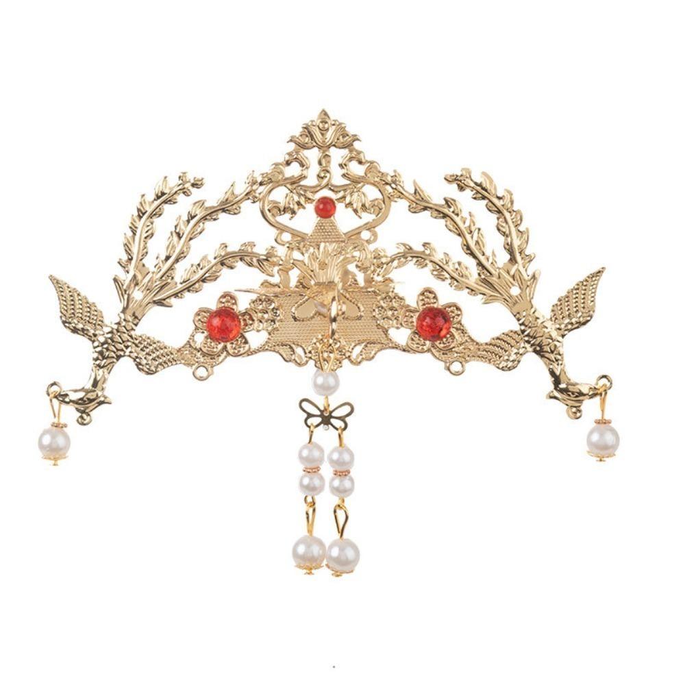 Свадебная тиара Ханфу Корона для волос Ретро свадебный головной убор Винтажная жемчужная кисточка Шпилька для волос Свадебные фотографии