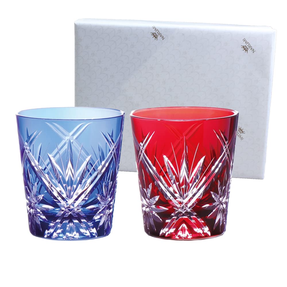NARUMI Стаканы Рокс Пара Стаканов Стеклоизделия Вальс 270 мл Синий Красный Цветной Резной Стакан Стакан для Виски Старый Стакан Свадебный Подарок Подарок на День Подарок в Подарочной Коробке Упакованный &