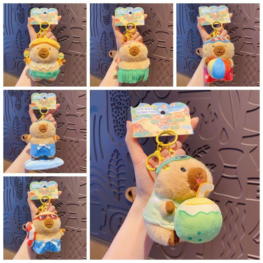 Cartoon Capybara Dolls Pendant Island Style Car Keyring Funny Plush Capybara Keychain Gifts — купить товар онлайн с бесплатной доставкой до всему миру!