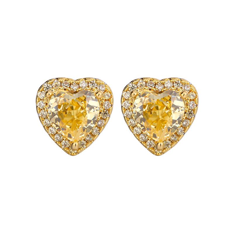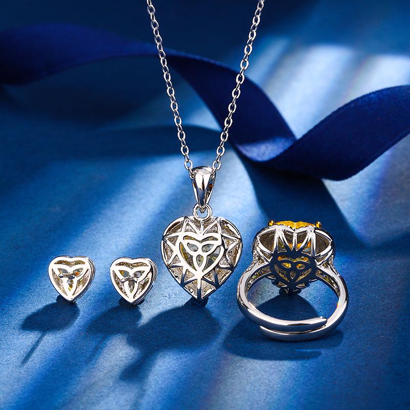 Ювелирный набор из меди с желтыми бриллиантами огранки «Ледяной цветок» в форме сердца - 10*10-6*6 Высокоуглеродистые бриллианты для осени/зимы.