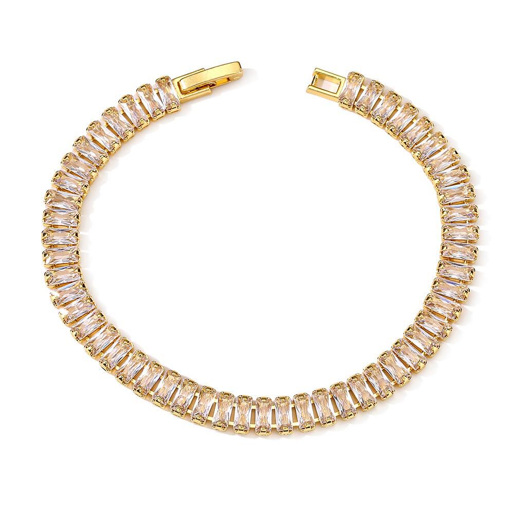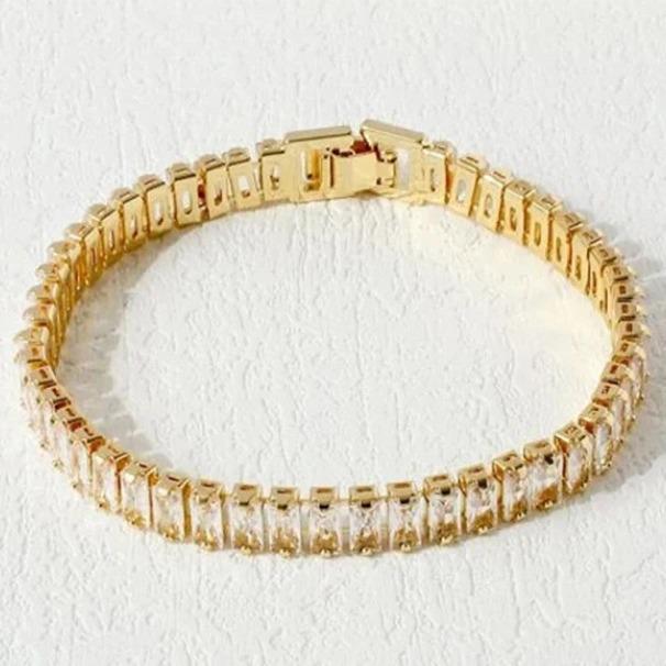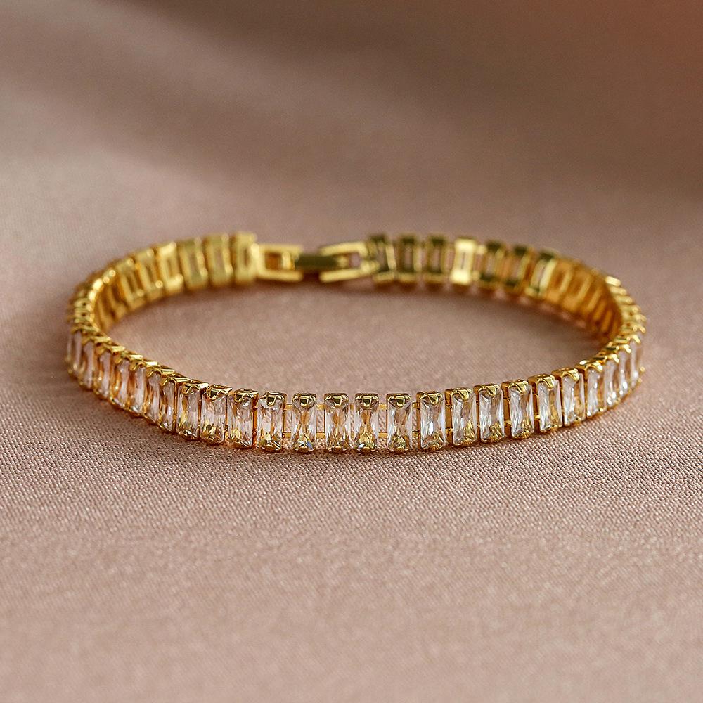 Минималистичный Медный Браслет в Стиле Легкой Роскоши с Цирконом, Дизайн с Бриллиантовой Огранкой 0,7 мм - Универсальная Модная Бижутерия