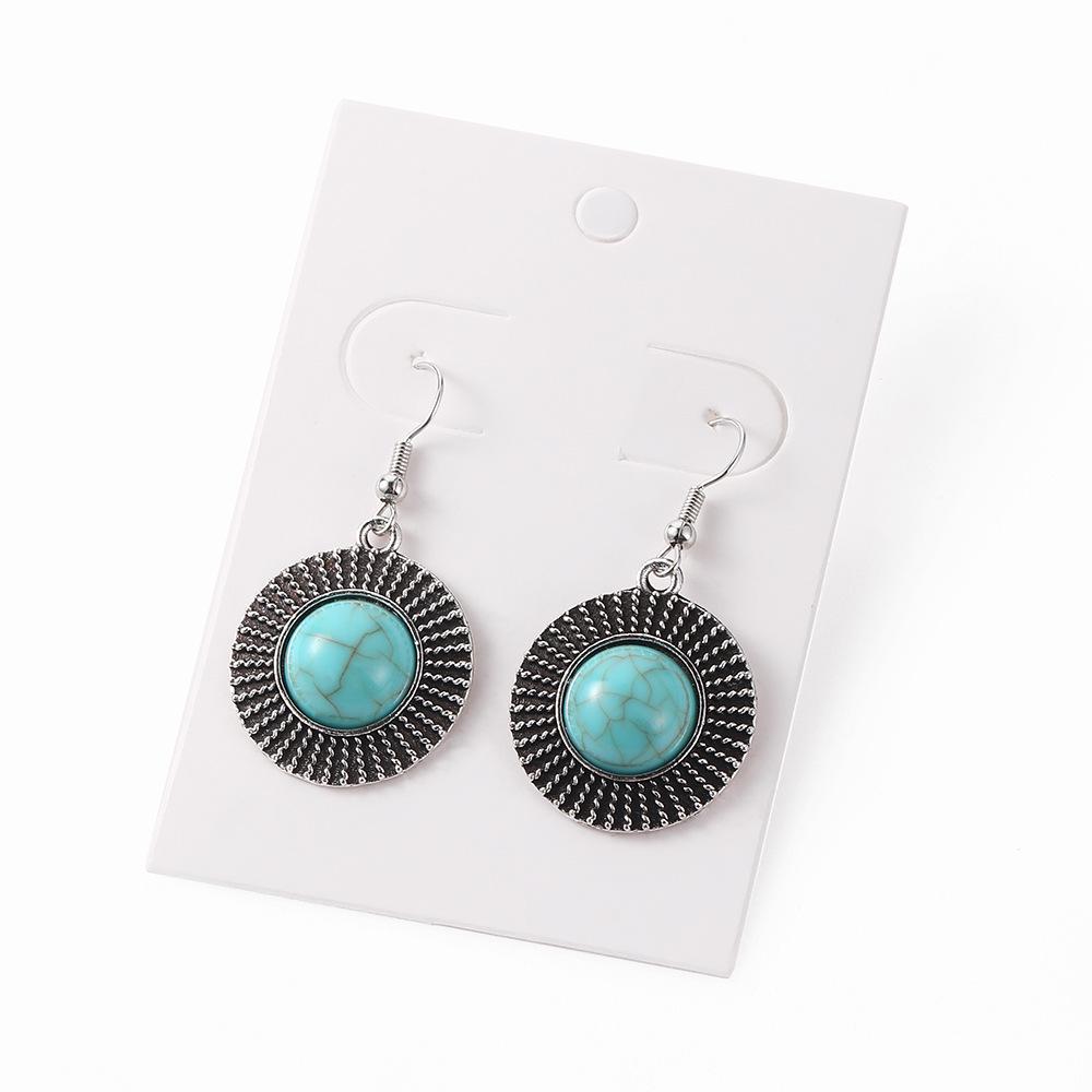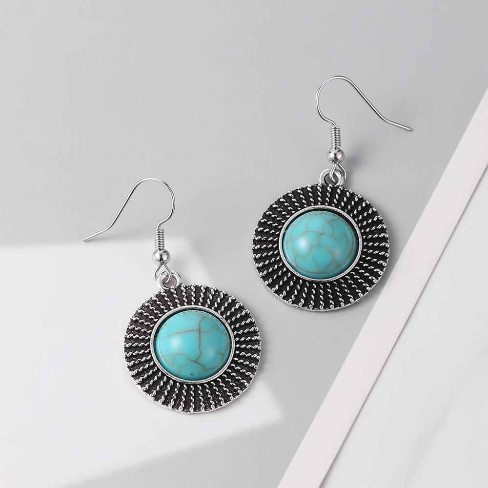 Бирюзовые круглые серьги в стиле ретро с крючками для модного образа